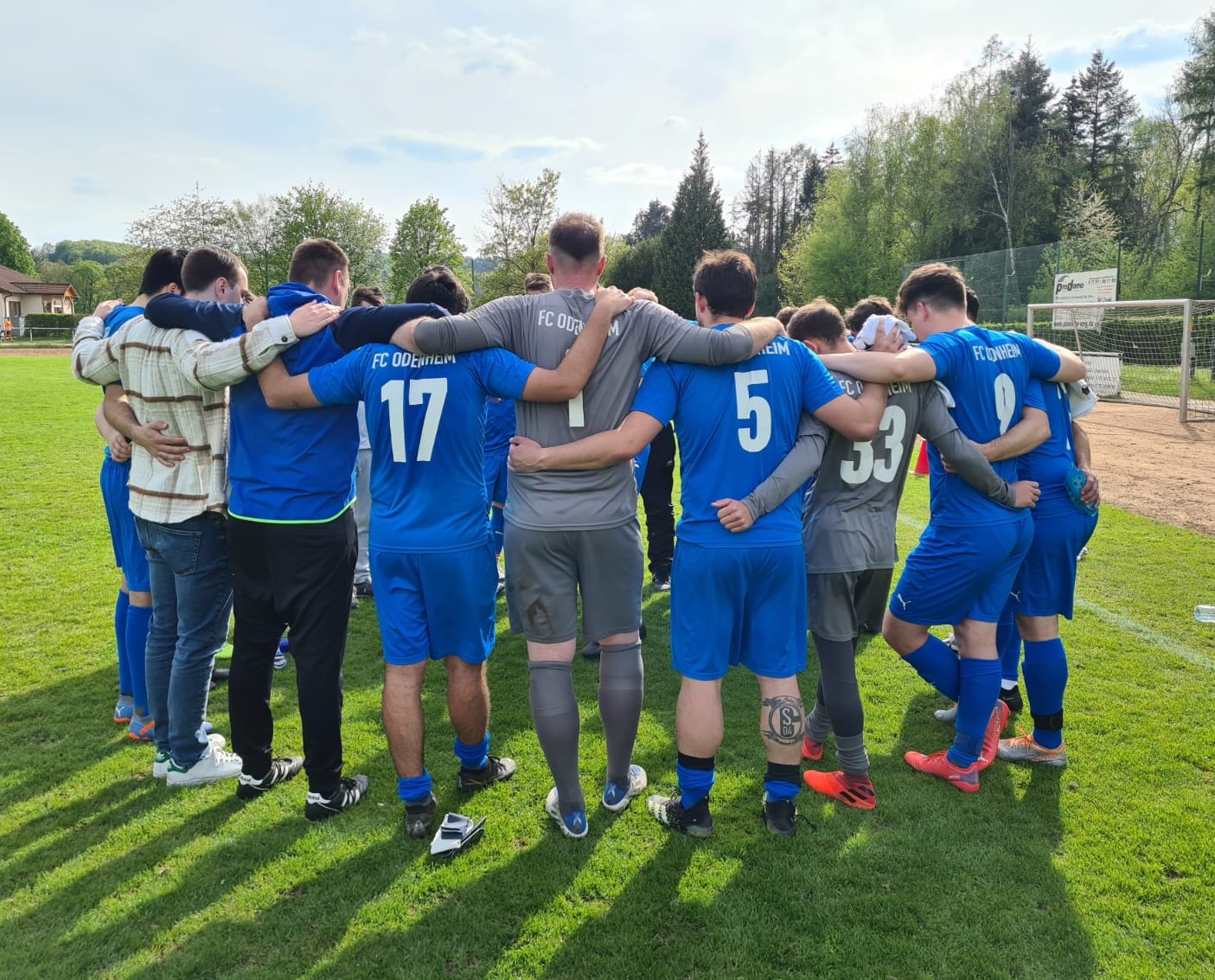 Die erste Offensivaktion in Durchgang 2 war wiederum für unseren FCO zu verzeichnen. Es gab hier Freistoß von links und gleich alle 11 Ubstädter versammelten sich zur Verteidigung im eigenen Strafraum. Den zunächst abgewehrten Ball legte Sandro Böser für Safan aus, der aus rund 18 Metern aber übers Tor abschloss. In der 54sten eine von Nico Sinibaldi starke Hereingabe, die zwei FCO´ler leider verpassten. In der 57. Minute der erste Wechsel bei unserem FCO: Positionsgetreu Dominic Ferreira da Fonseca für Safan. In der 66sten versuchte es Sinibaldi mit einem Abschluss von rechts (ca. einen Meter übers Tor) und in der 67sten dann die in Hälfte 2 zwar einzig wahre, dafür aber umso große Torchance für unseren FCO, die vierte dicke ihrer Art im Spiel. Nach einem Eckball hatte sich Böser rechts im Strafraum behauptet und legte von der Toraußenlinie für unseren am rechten Fünfmeterraumeck lauernden Spielertrainer Luca Hodecker auf. Dessen Abschluss wurde von einem Ubstädter Feldspieler kurz vor der Torlinie gerade noch so geblockt. Mit dem Rücken zum Tor versuchte sich Hodecker das Leder zurückzuholen und kam dann von einem Gegenspieler von hinten bedrängt, zu Fall. Elfmeter? Wir können uns hier leider kein abschließendes Urteil bilden, hätte der Schiedsrichter seine oft recht kleinliche Linie jedoch fortgeführt, hätten sich die Ubstädter über einen Elfmeterpfiff nicht beklagen dürfen. Wetten, dass eine vergleichbare Szene außerhalb des Strafraums gepfiffen worden wäre?! Der FV Ubstadt hatte sich in Hälfte 2 bisher mehr auf Konter ausgerichtet und kam nach einem solchen in Minute 69 zu einem in den zweiten 45 Minuten ersten Offensivlebenszeichen, als Just einen Kopfball mit einer Hand und mit kurzem Nachfassen parierte. Mit quasi Anbruch der letzten Viertelstunde übernahmen dann die Gäste das Kommando. Von unserem FCO war offensiv nichts mehr zu sehen und man musste sich notgedrungen bis zum Schlusspfiff auf die Defensive konzentrieren. Diese wurde von den Ubstädtern mit zunehmender Zeit immer mehr gefordert. Es war unverkennbar, dass unseren Männern die 90 intensiven Minuten vom Mittwoch gegen Neudorf in den Knochen steckten, während der FVU zuletzt 7 Tage Pause gehabt hatte. Ein erstes Durchatmen in Minute 75, als nach einer Ecke ein Schuss vom linken Strafraumeck an die Unterkante der Latte des Odenheimer Tores klatschte. Zwei Minuten später, nach der nächsten Ecke (es waren insgesamt deren Standards zu viel, die unser FCO zuließ), ein Abschluss von diesmal dem anderen Strafraumeck, Just war jedoch zur Stelle. In der 77sten auch der zweite FCO-Wechsel: Nicolai Manz für den angeschlagenen Sinibaldi. In Minute 80 dann der zweite Aluminiumkracher, diesmal rettete der linke Innenpfosten für unsere Blau-Weißen. In der 83. Spielminute flog das Spielgerät im Ping-Pong-Verfahren vor die Füße eines einschussbereiten Ubstädters, im letzten Moment war aber ein Odenheimer noch zur Stelle. Der Ubstädter war dabei im Übrigen klar im Abseits gestanden. Der Vollständigkeit und Ehrlichkeit halber war es kurz zuvor jedoch umgekehrt gewesen, als ein möglicherweise vielversprechender Gästeangriff hier zu Unrecht wegen Abseits zurückgepfiffen worden war. Ubstadt war in der Schlussphase klar überlegen und gewann zahlreiche Zweikämpfe, sowohl in der Offensive als auch im Mittelfeld, deren Abwehr wurde hier nicht wirklich gefordert. Demgegenüber verteidigte unsere Elf leidenschaftlich und mit großem Einsatz und ließ nichts mehr zu. Hierzu trug in den letzten Minuten auch noch Marcel Goldschmidt bei, der in der 89. Minute für Schneider ins Spiel gekommen war.