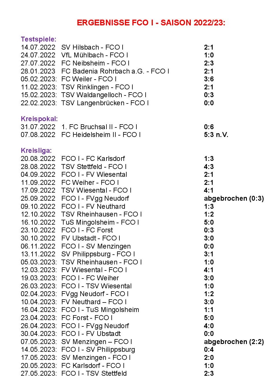 Die einzelnen Spielberichte sind auf unserer Homepage nachzulesen unter https://www.fcodenheim.de/index.php/1-mannschaft/spielberichte/76-spielberichte-2020-2023.