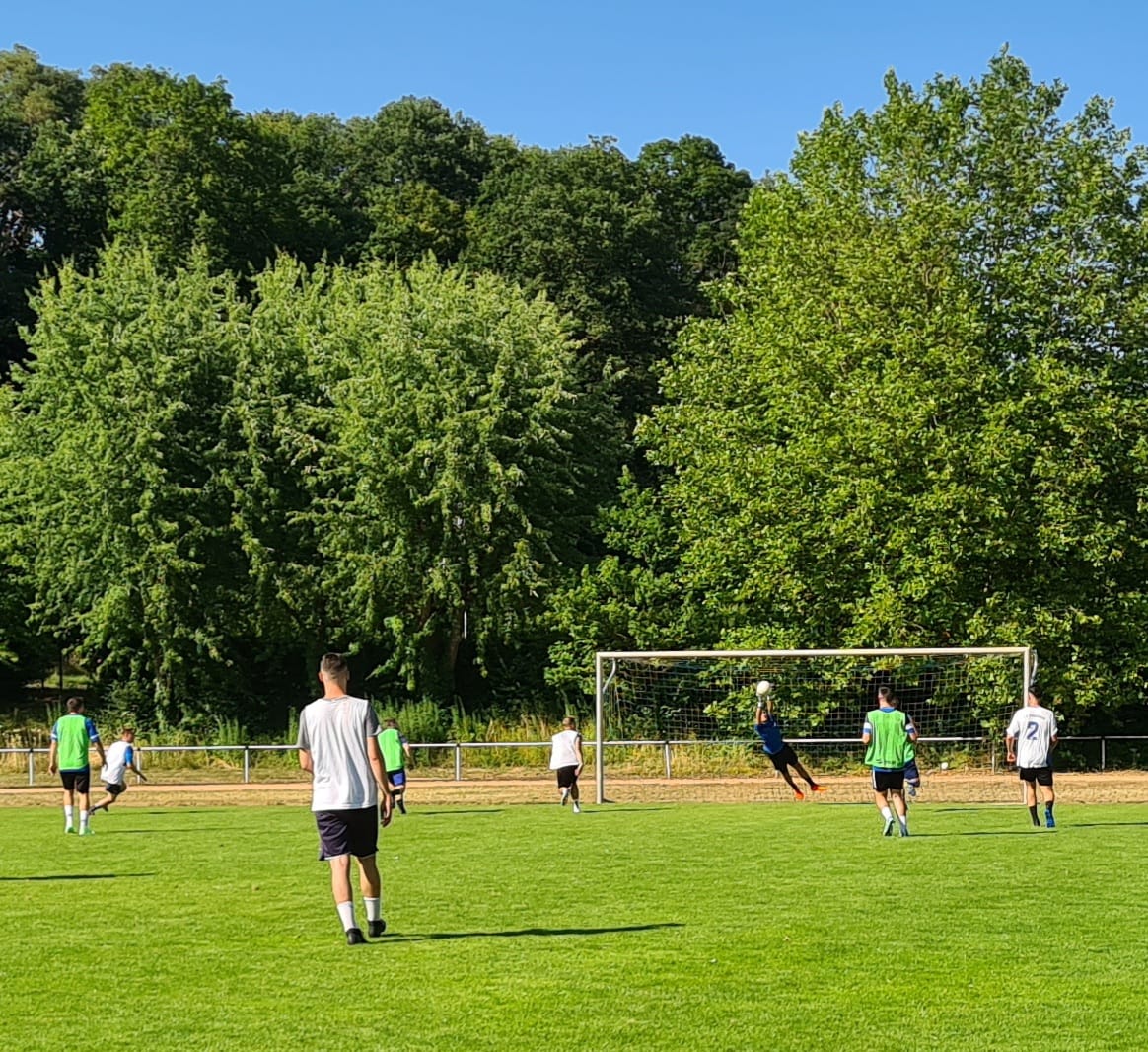 Im Rahmen der Saisoneröffnung (Bericht und Fotos siehe unter Saisoneröffnung 2023) fand auch eine erste Trainingseinheit unserer mit vielerlei Personalien runderneuerten 1. Herrenmannschaft statt. Der Startschuss zur Vorbereitung auf die Saison 2023/24 ist damit erfolgt. Neutrainer Alexander Runne musste dabei noch auf einige Spieler verzichten, konnte aber einen Großteil seines rund 25köpfigen Teams begrüßen.