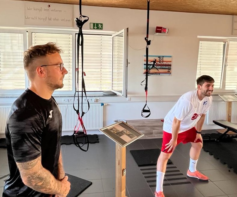 Für unsere 1. Herrenmannschaft ging es am Freitag, den 14. Juli, bei der 4. Trainingseinheit der diesjährigen Sommervorbereitung mal nicht auf den Platz, sondern nach Weiher ins dortige Studio „Free Moves – Beweg dich fit!“, das mit Sascha Just (Fitnesstrainer, Fachtrainer für Rehabilitation) und Steffen Just (Staatlich anerkannter Sport- und Gymnastiklehrer, Sporttherapeut, Bachelor of Fitnessökonomie, Fachtrainer für Rehabilitation, Rückenschulleiter) von zwei ehemaligen Fußballschützlingen unseres Trainers Alex Runne und bis zur vergangenen Saison Spielern des FC Weiher geleitet wird. Unseren Männern wurde ein abwechslungsreiches funktionelles Training zur weiteren Fitnessverbesserung angeboten und trotz mehreren Tropen Schweiß waren alle mit viel Spaß und großer Motivation bei der Sache. Vielen Dank an Sascha und Steffen! Fotos siehe nachstehend.