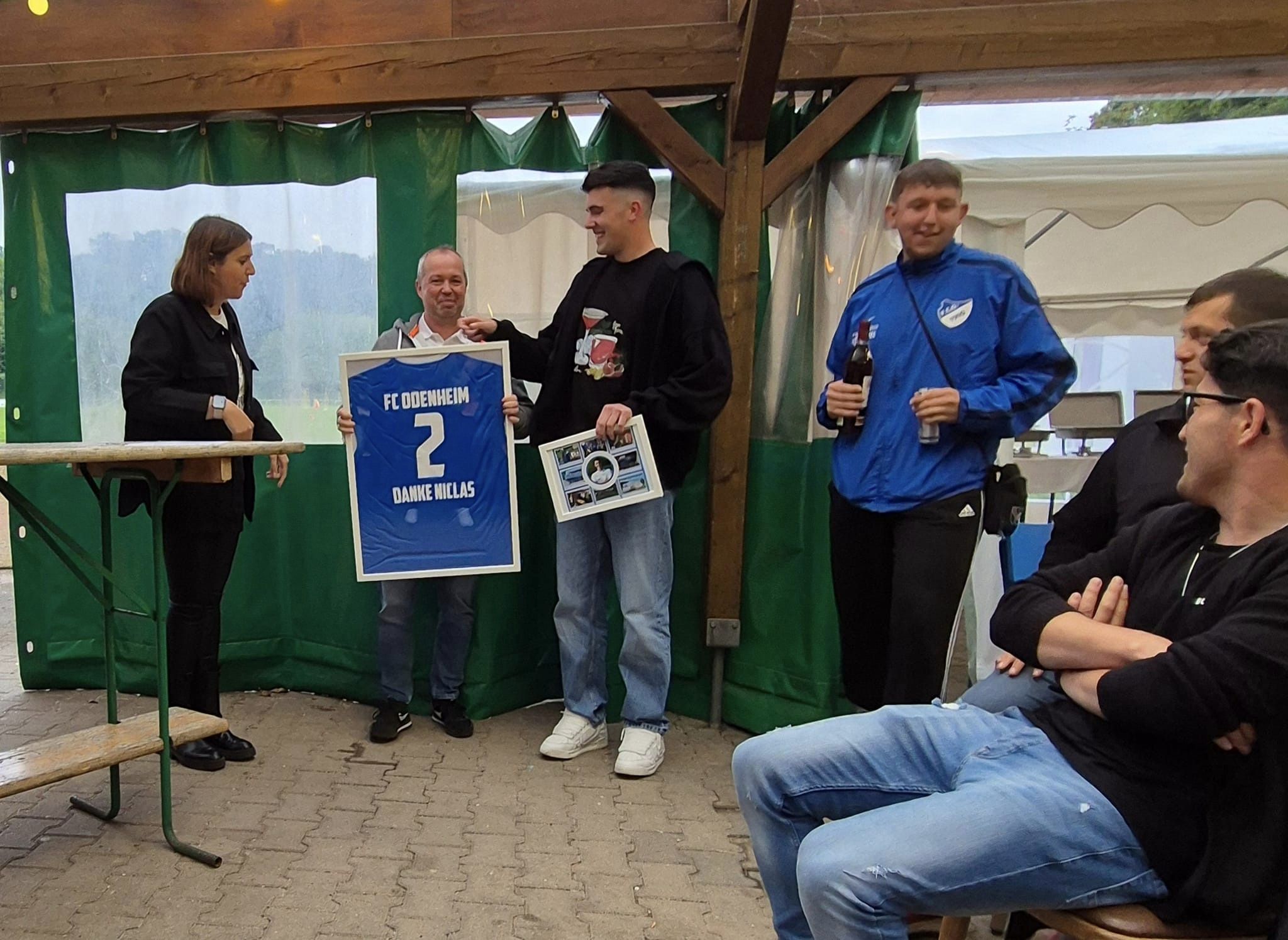 Niclas wurden beim Saisonabschlussfest als Abschiedsgeschenke ein eingerahmtes FCO-Trikot sowie eine Fotocollage überreicht.