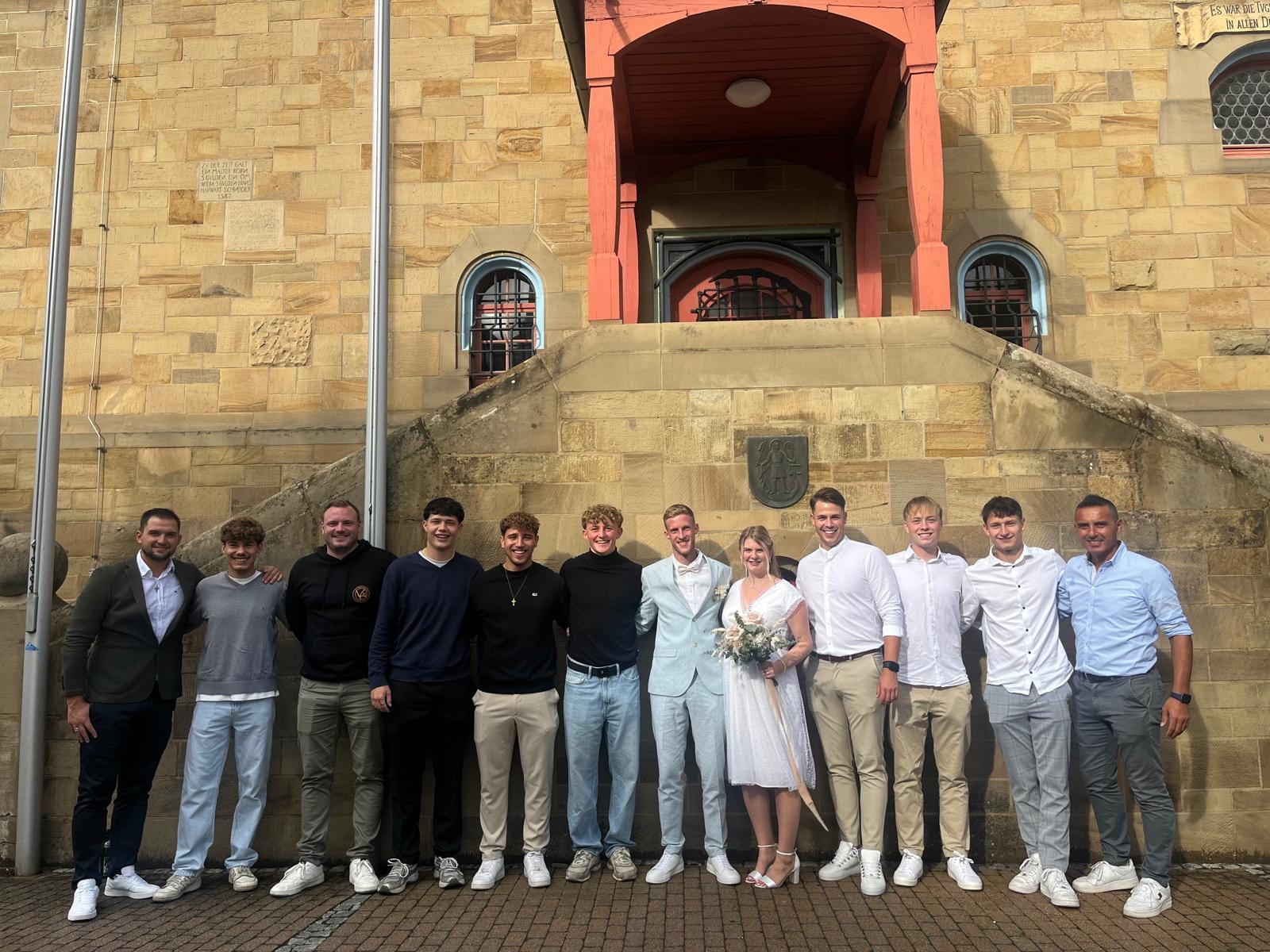 Am Sonntag noch zweifacher Torschütze, am Montag vor dem Standesamt. Unser Co-Spielertrainer der Ersten, Julian Beer und seine Frau Celine, geb. Beer, haben sich am 9. September 2024 getraut und den Bund für's Leben geschlossen. Wir gratulieren den frisch Vermählten von ganzem Herzen und wünschen ihnen alles Gute für die Zukunft!