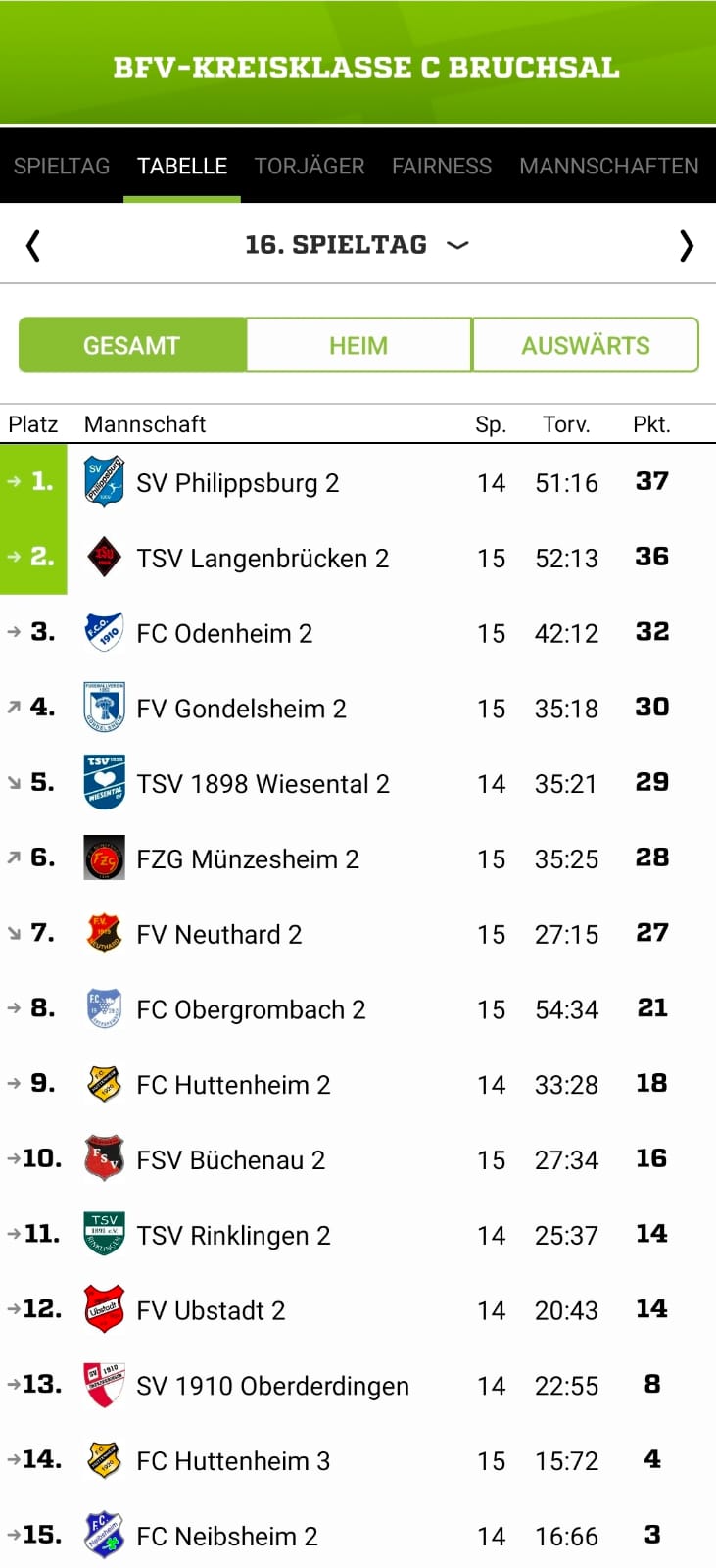 Zunächst ein Gesamtblick auf die Tabelle in der Kreisklasse C: