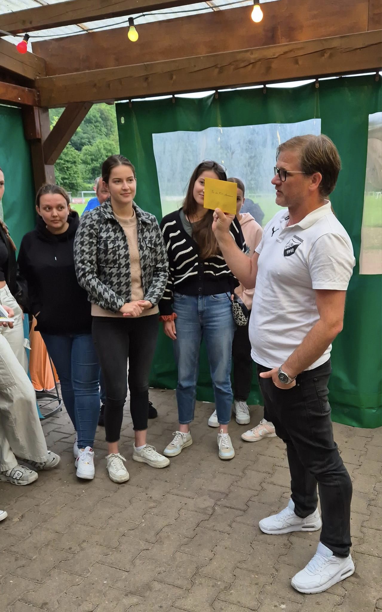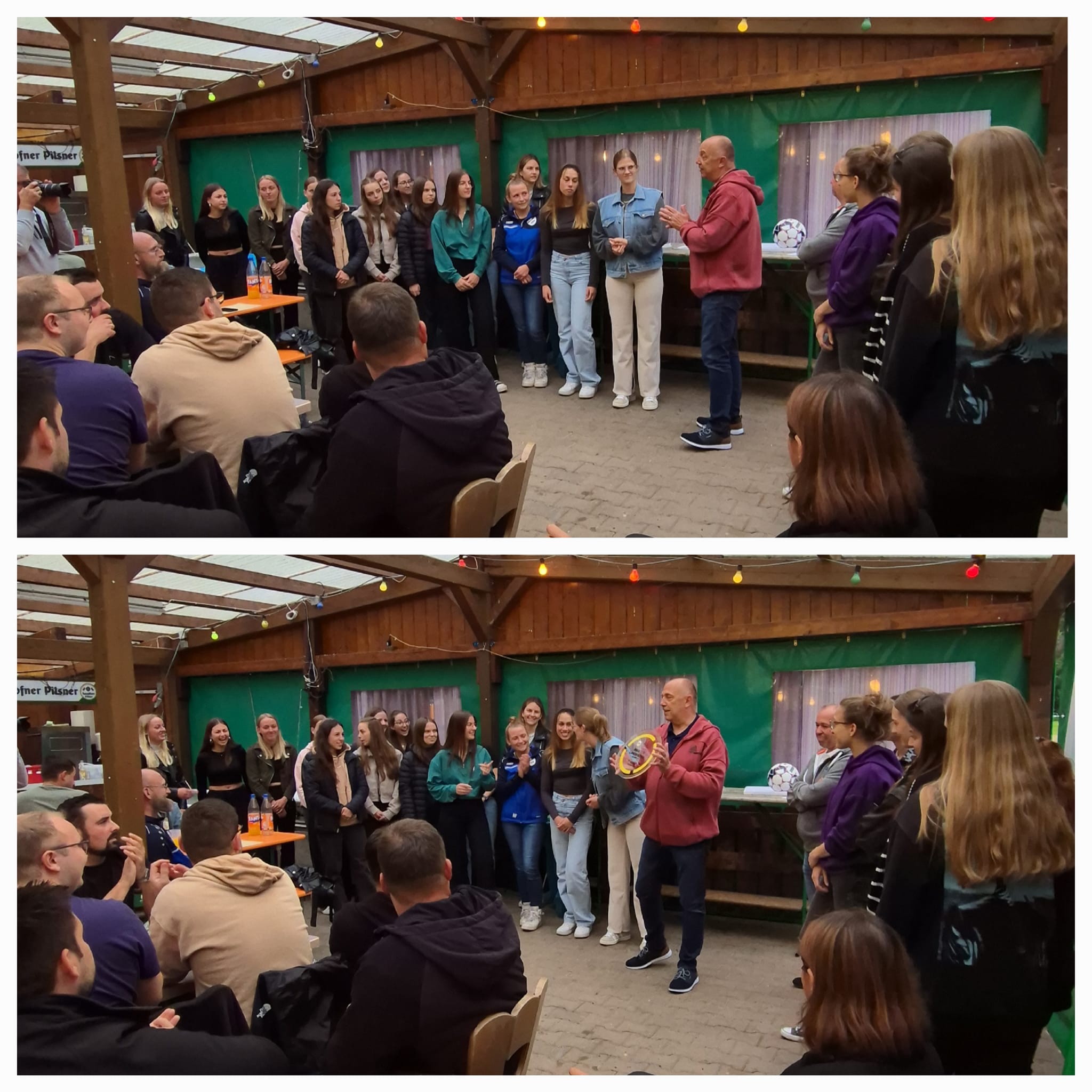 Guthier fand sehr lobende Worte für unsere FCO-Amazonen und übergab zusätzlich auch noch eine Ballspende. Unter großem Applaus und mit einer Laola-Welle ließ man unsere Girls hochleben.