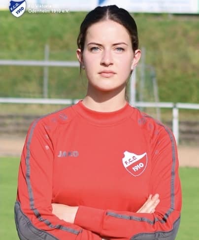 Mit der nahezu kompletten 2. Zeuterner Damenmannschaft und auch einigen aus der dortigen Ersten wechselte Trainer "Jo" dann zur Saison 2017/18 zu unserem FC Odenheim. Ricarda war damit Teil derer, die nach Jahrzehnten wieder ein FCO-Frauenteam aufleben ließen. Und Ricarda & Co. waren sogleich megaerfolgreich. Da die beiden Erstplatzierten der damaligen Landesliga Rhein-Neckar nicht aufsteigen konnten, rückte unser junges Team nach und stieg mit einem Altersschnitt von gerade einmal 18 Jahren erstmals in die Verbandsliga auf, die Saison hatte man sogar mit einem Schnitt von erst 17,8 Jahren eröffnet. Die Verbandsliga war für alle ein großes Abenteuer. Man konnte immerhin 10 Punkte einsammeln, aber als mit Abstand jüngstes Team den letzten Tabellenplatz nicht verhindern. Trotz allem war es von allen eine starke Saisonleistung, insbesondere von der damals 18jährigen Ricarda. Unvergessen hier u. a., wie sie sich im Duell beim bereits feststehenden Oberligaaufsteiger TSVA Viernheim halsbrecherisch einem Angriff entgegenstemmte, sich dabei schwer verletzte, mit dem Krankenwagen ins Krankenhaus musste und für die Restrunde ausfiel. Im ersten Spiel der Folgesaison stand sie wieder mutig im Tor und kam mit ihrer FCO-Mannschaft in den Folgejahren zunächst zu folgenden Platzierungen: 9ter Landesliga Rhein-Neckar/Odenwald, 6ter Landesliga Mittelbaden, 2 x 4ter Landesliga Staffel 3. Zudem holten Ricardas Mannschaften so manchen Turniersieg und sie wurde auch bei Hallenturnieren zur besten Torhüterin ausgezeichnet.