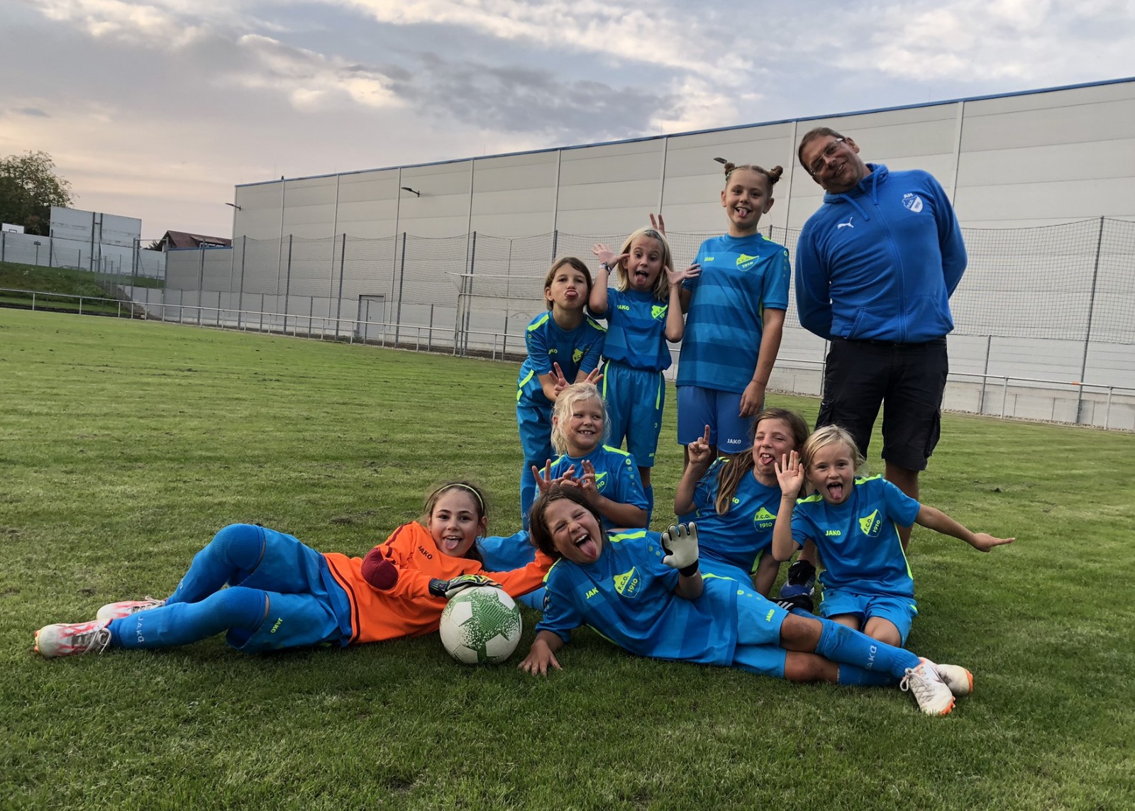 Für unsere F-Mädchen ging es am 2. Spieltag wieder gegen Jugendteams, diesmal beim SV Menzingen. Hier stimmten sie sich vor dem ersten Spiel darauf ein, heute auch ganz besonders für Trainerin Emily Wagner „Gas zu geben“, die zeitgleich auf der Hochzeitsfeier einer Freundin war. Vielen Dank für Andy Bayer, der beim Spieltag das Coaching der F-Mädchen übernommen hat. Gegen Flehingen konnten die Mädels dann auch an ihre starke Leistung vom letzten Spieltag in Heidelsheim anknüpfen und entschieden diese Spiel mit 3:1 für sich. Im zweiten Spiel gegen den SV Menzingen zeigten sie erneut ihr gutes Zusammenspiel und konnten mit 6 Toren erneut punkten. Im letzten Spiel überraschte der FC Heidelsheim unsere Mädels zunächst mit einem Schuss aus der zweiten Reihe, der unhaltbar im Tor landete. Unsere Mädels spielten munter weiter und konnten mit zwei Treffern auch dieses letzte Spiel des Tages für sich entscheiden. Was für ein Spieltag, weiter so!