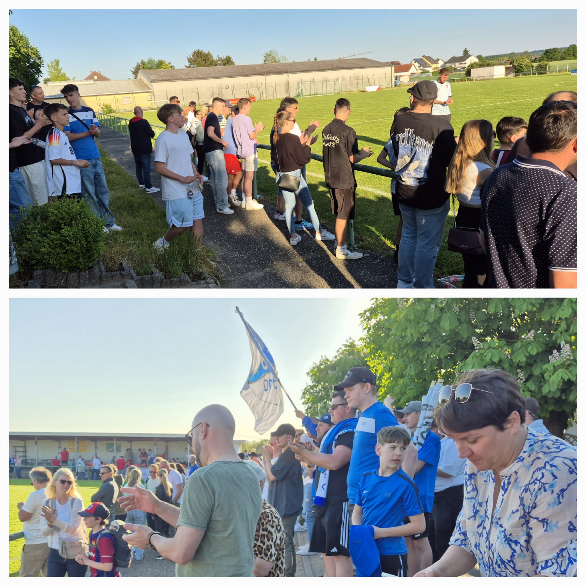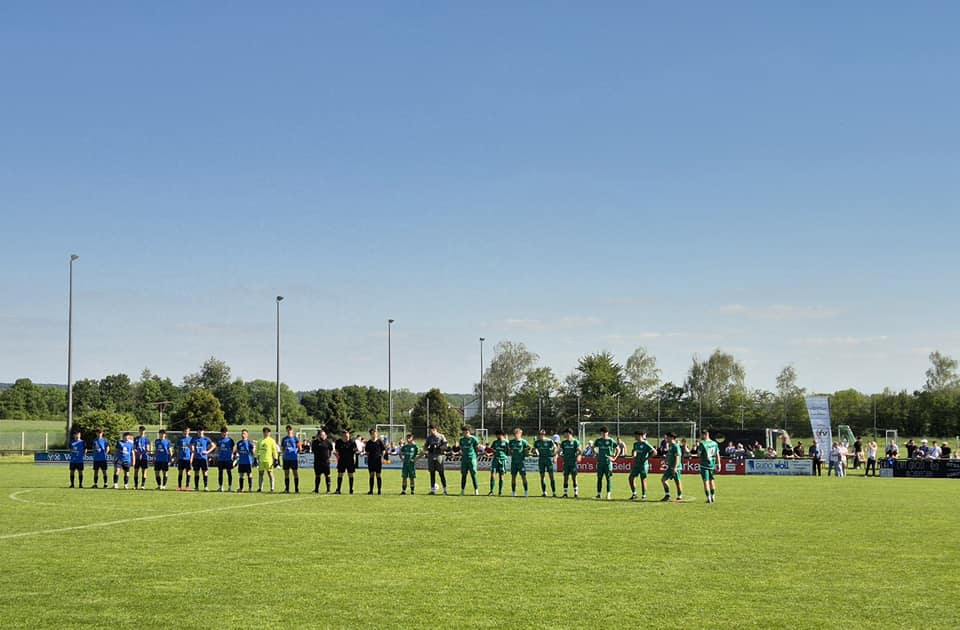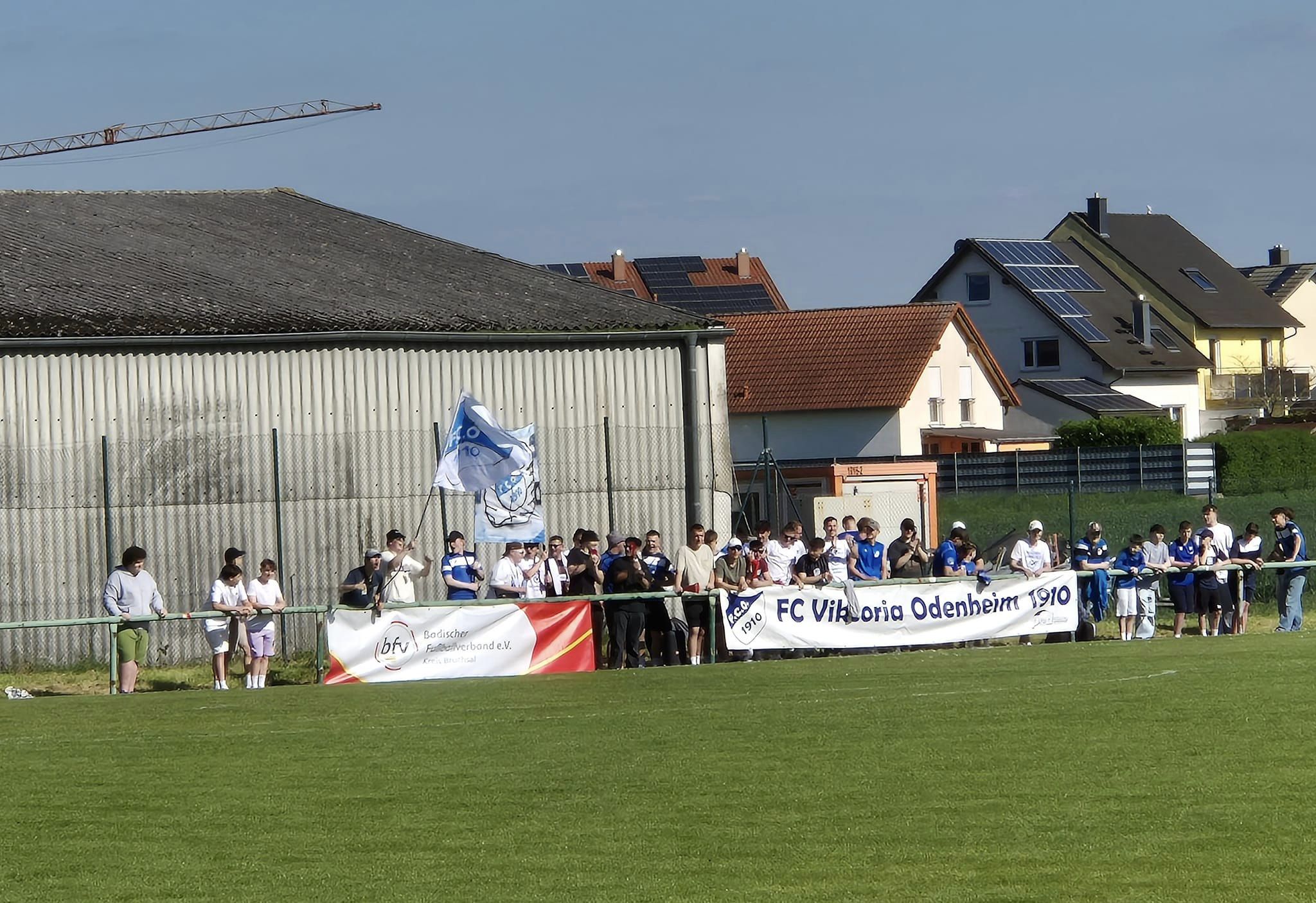 Geschätzte 400 und vielleicht sogar mehr Zuschauer/innen boten dem diesjährigen A-Juniorenkreispokalfinale am Feiertag Christ Himmelfahrt/Vatertag in Langenbrücken einen tollen Rahmen. Dabei waren die Fans unserer Jugendkooperation der Gesamtstadt Östringen zahlenmäßig und vor allem auch in Sachen Lautstärke denen der Kirrlacher überlegen. Eine tolle Sache, bedenkt man, dass des Gegners Fanschar zum großen Teil noch aus den eigenen B-Junioren bestand, die unmittelbar zuvor gespielt hatten.