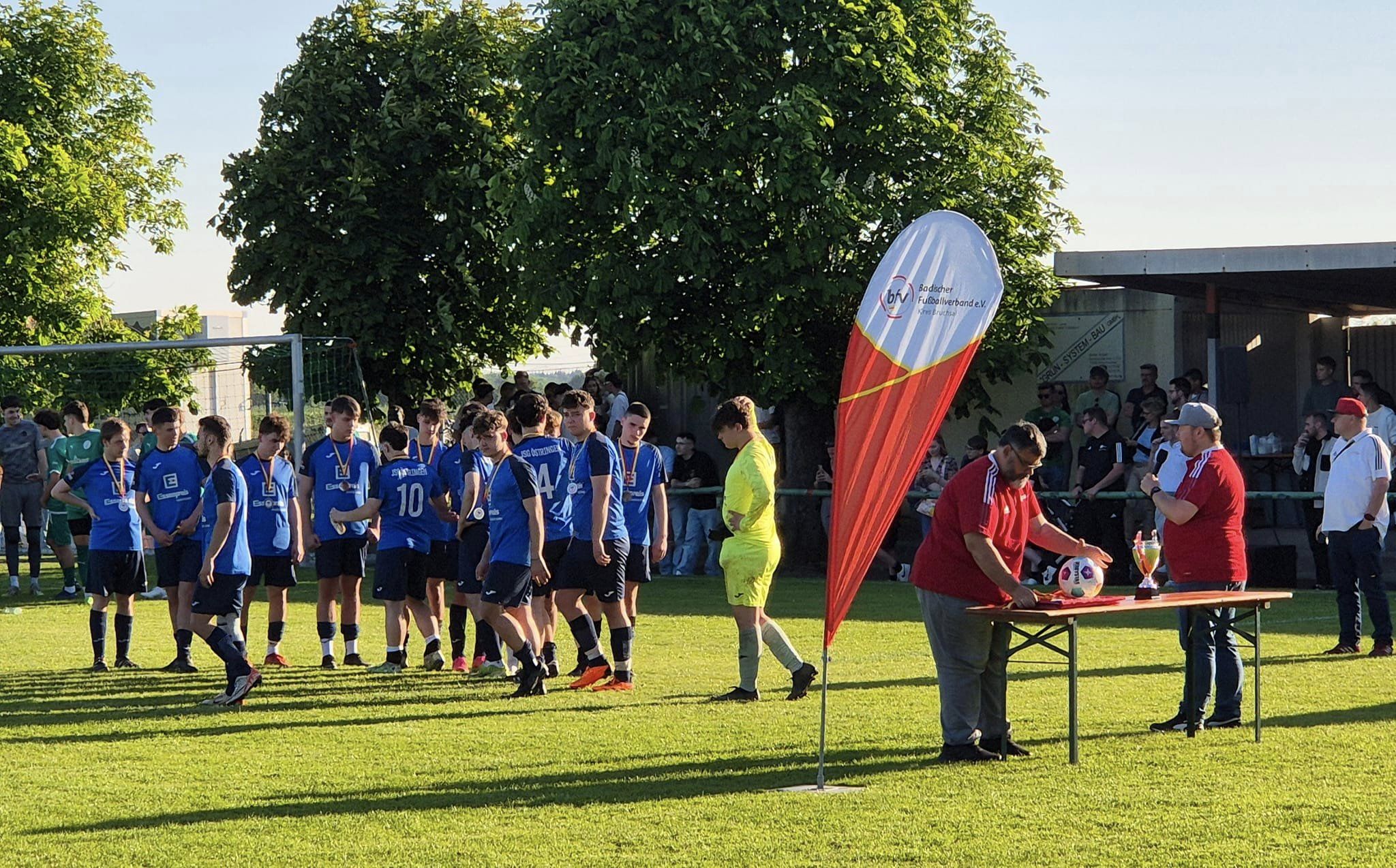 Die Schlussworte gebühren unseren Jungs und dem Trainerteam um Niklas Zabler. Diese haben alles gegeben und eine zusammen mit dem Gegner gerade in Sachen Tempo sehr ansprechende A-Juniorenpartie dargeboten. Technisch war es auf dem etwas stumpfen Rasen dabei nicht immer einfach. Jungs, ihr braucht euch nicht grämen, haben doch zum Pokalcoup nur Nuancen gefehlt. Ihr dürft sehr stolz auf eine richtig gute Saison sein! Alles Gute für die restlichen drei Saisonspiele, gerne mit der Revanche am 1. Juni in Odenheim gegen Kirrlach.