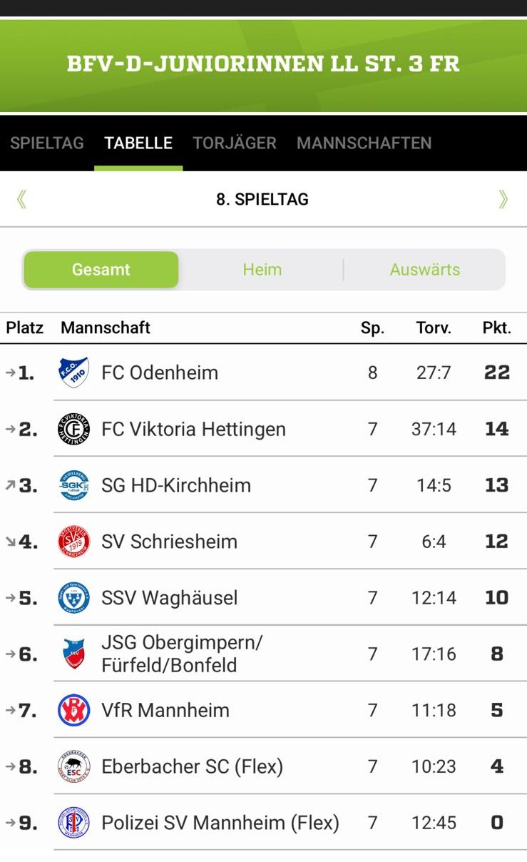 Zur Premierensaison unserer D-Juniorinnen: Erstmals hat unser FCO eine Mädchenmannschaft in diesem Jahrgang an den Start geschickt und es entwickelte sich im Laufe der Saison sogar ein Spielerinnenkader von sage und schreibe 22 D-Mädchen. Für die überwiegend aus den E-Mädchen entsprungene Mannschaft galt es in der Herbst-(Vor-)runde sich zunächst vom 5+1 (bisher bei den E-Mädchen) auf ein 7+1 mit 40x 60 m Spielfeldgröße zu gewöhnen. Dies gelang in der Staffel 2 HR gleich richtig gut, mit 3 Siegen, 1 Remis und 5 Niederlagen schloss man diese auf Rang 7 ab. In der Frühjahres-(Rück-)runde starteten unsere Girls dann so richtig durch. In der nun Staffel 3 FR blieben sie ungeschlagen und feierten 7 Siege und 1 Unentschieden bei 27:7 Toren. Dies bedeutet klar den 1. Platz mit aktuell noch 8 Punkten Vorsprung auf den ersten Verfolger. Dieser hat noch ein Spiel und kann noch auf maximal 5 Zähler verkürzen.
