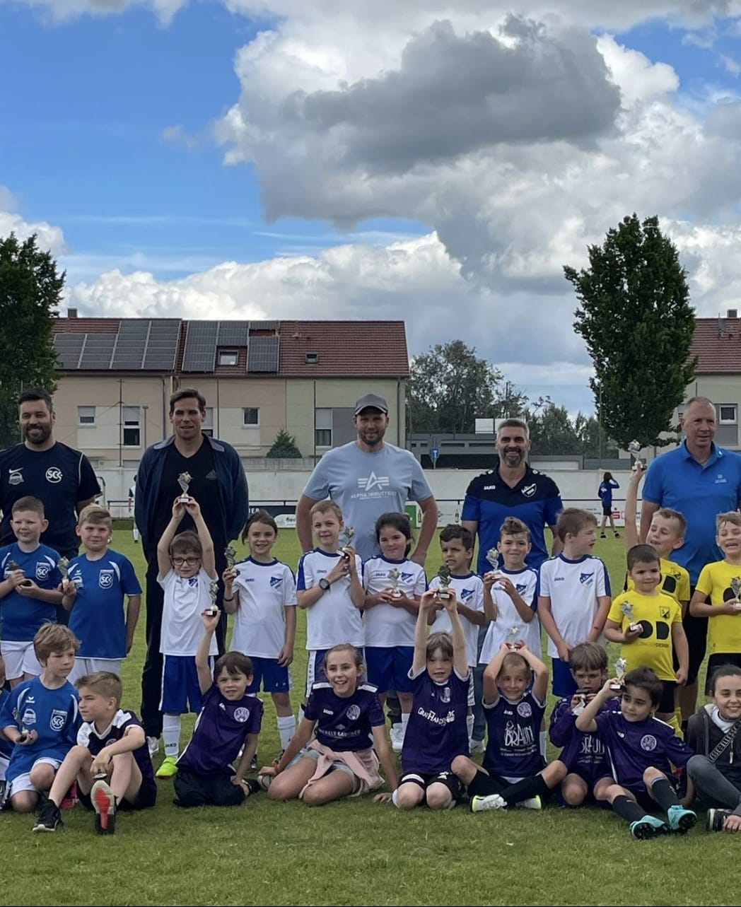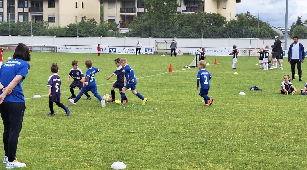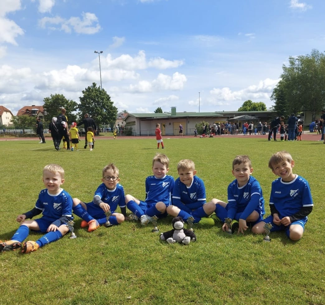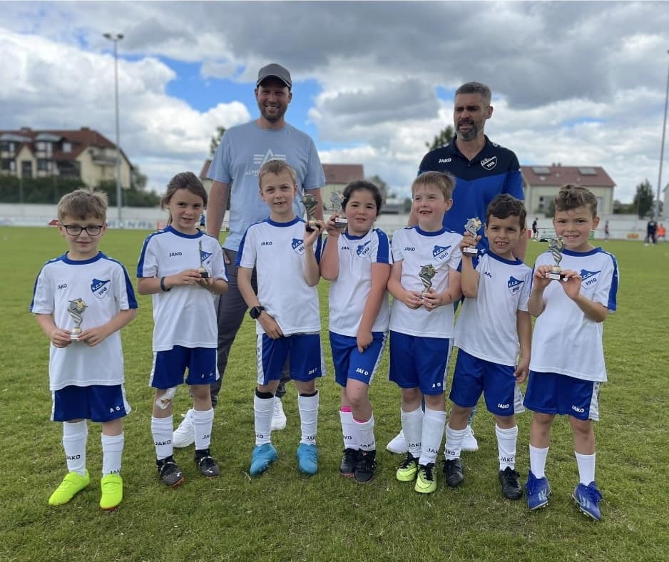 Bei herrlichem Fußballwetter ging es für unsere Bambinis zu recht früher Stund am 16. Juni nach Forst. Den Anfang machten unsere 2018er Kids und bestritten ihr erstes Spiel um kurz nach 9.00 Uhr gegen den Gastgeber. Hier zeigten sie eine geschlossene Mannschaftsleistung sowie puren Siegeswillen und konnten nach einer fulminanten Aufholjagd einen 8:3-Sieg erringen. Dabei konnte sich auch unser Jüngster mit in die Torschützenliste eintragen. Die weiteren Spiele gegen die SpVgg Durlach-Aue und gegen den FV Hambrücken führten jeweils zu knappen Ergebnissen. Auch wenn es zu Reibereien kam, ließen sich unsere Bambinis nicht unterkriegen und zeigten wie immer absolutes FairPlay. Beim ersten Spiel unserer 2017er Bambinis gab es mit einem 5:2 einen deutlichen Sieg gegen unsere Nachbarn aus Tiefenbach. Hier zeigten unsere „Großen“ viel Ehrgeiz und Kampfeswillen. Die Spiele gegen den FV Hambrücken und die FVgg Weingarten liefen leider nicht so gut, was dem Spaß am Fußball spielen aber keinesfalls geschadet hat. Denn das Wichtigste ist die Freude der Kids auf dem Platz und das Miteinander spielen! Nach dem Turnier gab es für alle Kids einen Pokal, für den wir uns beim FC Germania Forst bedanken, ebenso für das super organisierte Spielfest, bei dem unsere Bambinis sehr viel Spaß hatten. (S.M.)