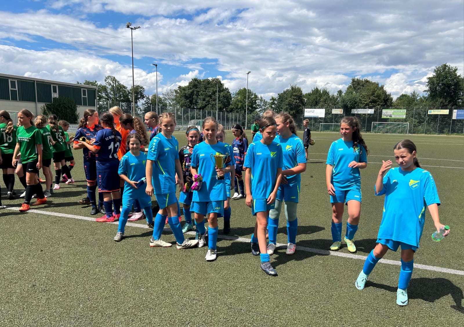Für unsere neuformierte D-Mädchen-Mannschaft ging es am Samstagvormittag nach Hohensachsen, in einen Stadtteil von Weinheim. Dort erwarteten sie die als sehr spielstark bekannten Teams SG Hohensachsen I, SG Hohensachsen II und SC Olympia Lorsch. Im 7+1-Modus galt es sich diesen Gegnern im Hin- und Rückspielrhythmus zu stellen, über jeweils üppige 20 Minuten Spielzeit. Diese schwierigen Aufgaben meisterten unsere Mädchen vorbildlich und spielten jeweils richtig toll mit. Diese Leistung ist vor allem auch deshalb zu würdigen, als unsere D-Mädchen gegenüber den im Schnitt älteren Gegnerinnen mit 6 Spielerinnen des Jahrgangs 2012, 4 des jüngeren JGs 2013 (gerade den E-Mädchen entsprungen) und sogar einer 2015erin (neu bei den E-Mädchen, bis Sommer noch F-Mädchen) angetreten sind.