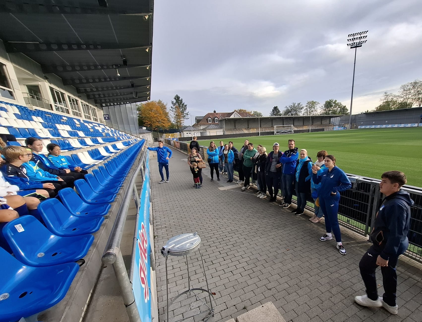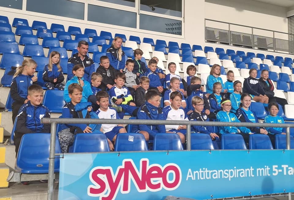 Am 11.09. hatten zunächst mehr als 60 Kinder aus dem Grundlagenbereich (F- und E-Jugend) sowie 10 Trainerinnen und Trainer im Odenheimer Siegfriedstadion an der Veranstaltung „TSG-Training on Tour“ teilgenommen (siehe hierzu Bericht TSG AOK Campus Teil 1). Am Mittwoch, den 16.10., folgte nun der Gegenbesuch im alten Dietmar-Hopp-Stadion in Hoffenheim, diesmal aufgrund der dortigen Kapazität aber nur mit unseren E-Jungs und E-Mädchen plus natürlich Trainern/innen und Eltern. Es erfolgte zunächst eine interessante Stadionführung, ehe unsere Kids dann in der dortigen Soccerhalle unter Anleitung der TSG wieder eine rund eineinhalbstündige Trainingseinheit auf Profiniveau mit Übungen wie „Chaos-Ball“ u.v.m. absolvieren durften.