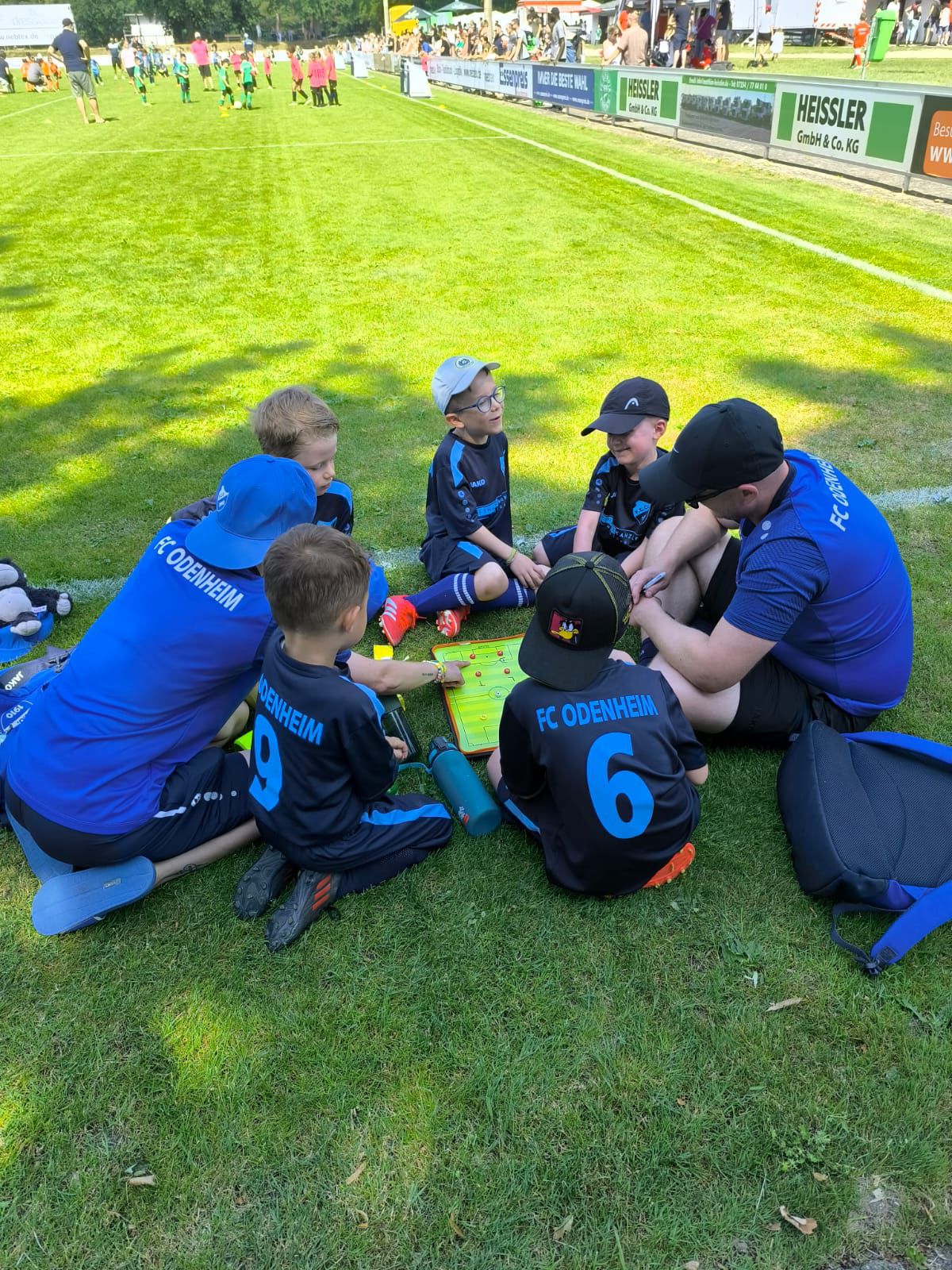 Absolutes Traumwetter, ein super Sportplatz und richtig gute Stimmung erwartete uns beim Gastgeber in Kirrlach. Wir waren mit fünf Spielern vor Ort, wodurch alle viele Spielminuten sammeln konnten. Es wurde gedribbelt, gepasst und es „regnete“ Tore am Fließband. Insgesamt war dieses Turnier ein Traum für jeden Trainer! Von der Mannschaftsleistung auf dem Platz bis hin zur gemeinsamen Analyse nach den Spielen - unsere 2018er Kids waren von Anfang bis Ende eine tolle Einheit. Und auch beim Fairplay haben sich unsere jungen Kicker hervorgetan. So ging der ein oder andere Ball unserer teils jüngeren Gegner auch mal „aus Versehen“ ins Tor und wurde von Spielern und Zuschauern euphorisch gefeiert!