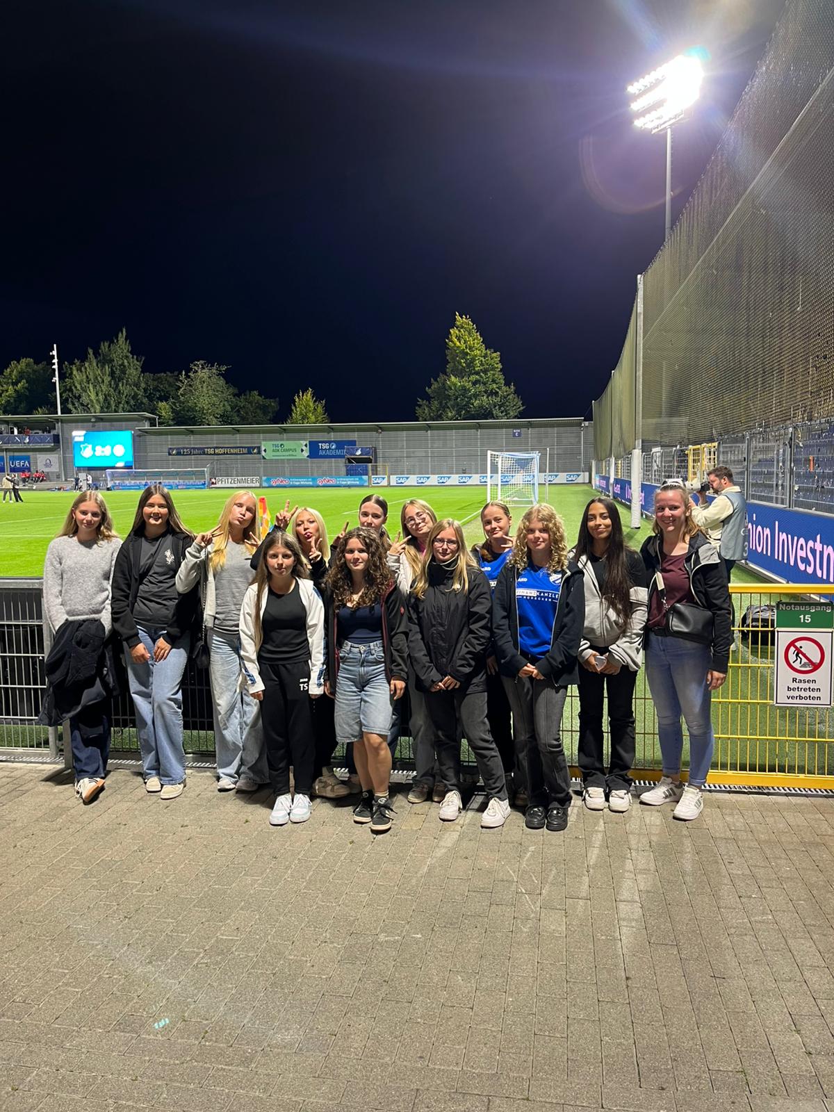 Nachdem am Vormittag noch ein Testspiel bestritten wurde ging es abends für insgesamt 12 Spielerinnen, ihre Trainerin Sofie sowie den zwei Damenspielerinnen Fabienne und Yvonne als zusätzliche Begleitung los zum Dietmar-Hopp-Stadion in Hoffenheim, um sich dort die Partie der Frauenbundesliga zwischen der TSG 1899 Hoffenheim und der Eintracht aus Frankfurt anzuschauen.