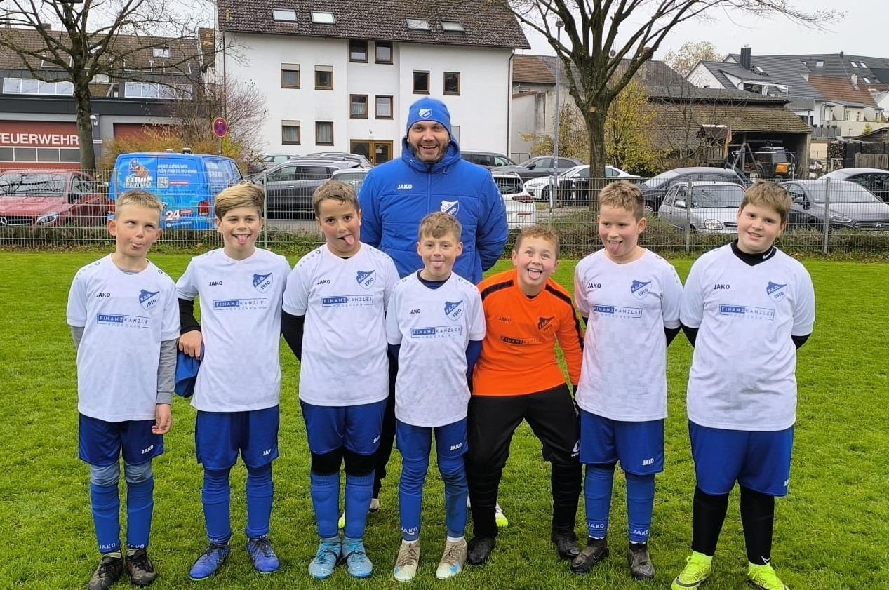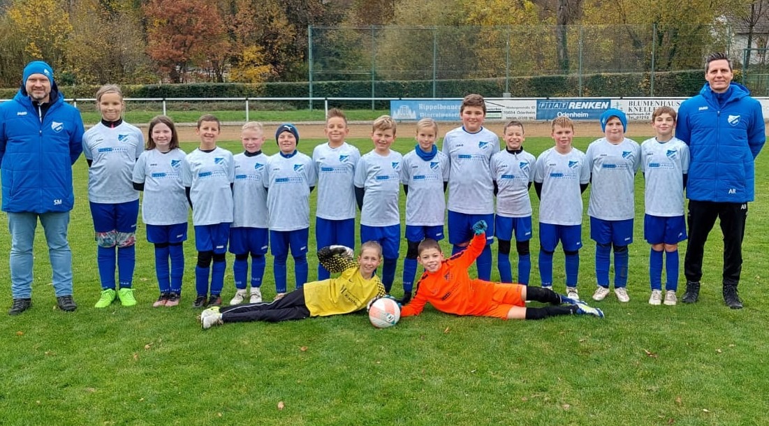 V.l.n.r. (Tore in Klammern): Katharina H. (1), Lilli P. (1), Niklas R., Levin M., Paul N. (1), Lias M. (1), Lennard S., Marie H., Matteo R. (9), Levi S., Lennard V. (2), Sam S. (1), Lucca R., vorne liegend: Ben G., Finn W.