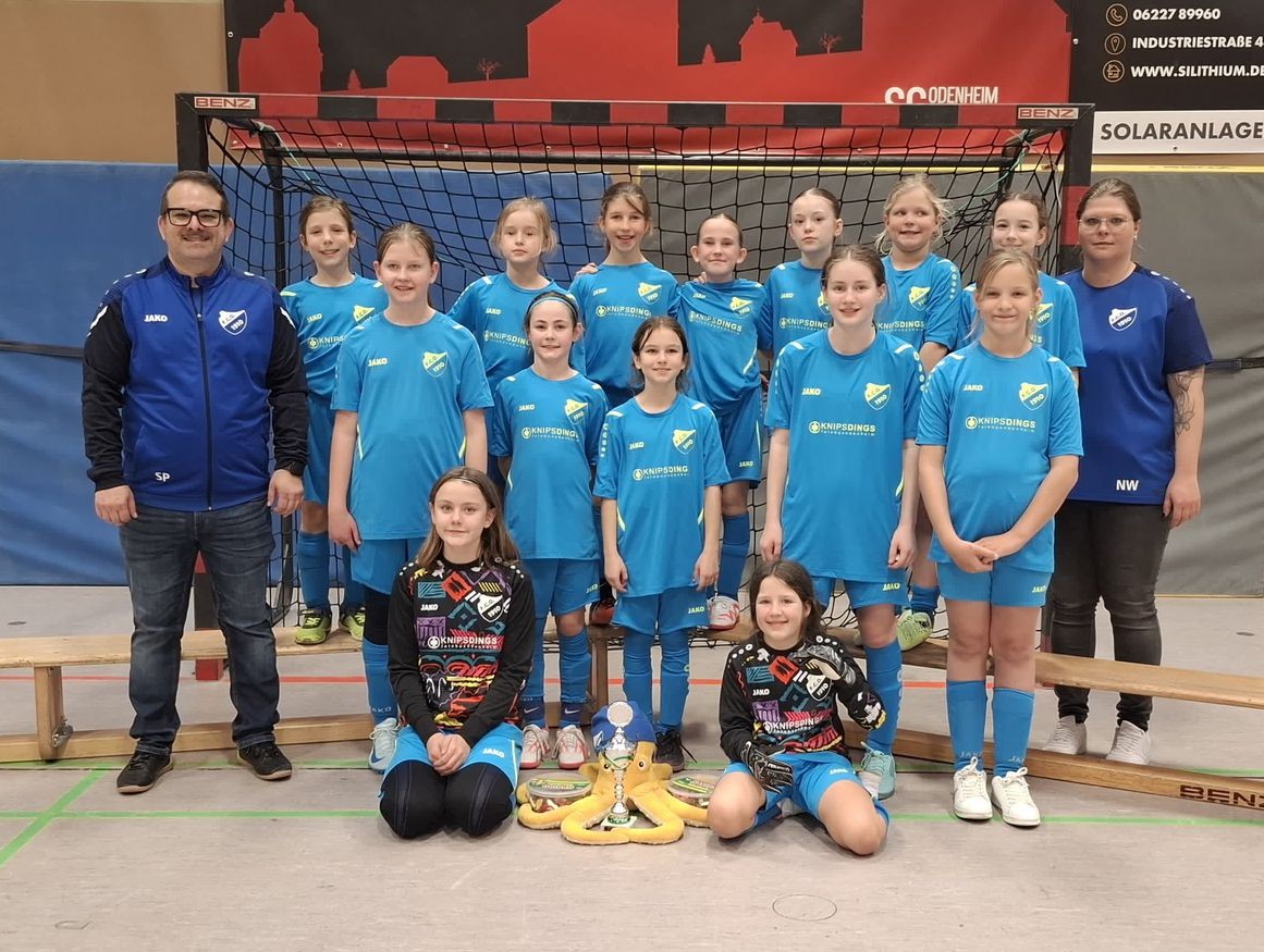 Unser Hallenturnier konnten wir im Vergleich zu letztem Jahr von 5 teilnehmenden auf 10 Mädchenteams in diesem Jahr ausbauen. Dank der zahlreichen helfenden Hände, sowohl aus der Elternschaft als auch der Jugendabteilung, liefen die Vorbereitungen und das Turnier an sich sehr harmonisch und zugleich erfolgreich in allen Belangen. Die Mädels zeigten tollen, fairen und spannenden Fußball bei einer super Atmosphäre. Unsere zwei FCO Teams schlugen sich gut. Das eine Team, ergänzt mit F-Mädels, kämpfte tapfer gegen eingespielte und gestandene E-Juniorinnen und schaffte es sogar, im Gesamtklassement die Zweitvertretung aus Neulußheim hinter sich zu lassen. Unser zweites FCO Team belegte ohne Gegentor mit 3 Siegen und 1 Unentschieden nur auf Grund des schlechteren Torverhältnisses Platz 2 in der Gruppenphase und musste somit ins Spiel um Platz 3, welches die Mädels gegen die Vorjahressiegerinnen des FC Weiher mit einem fantastischen Spiel und tollen Kombinationen gewannen. Man bleib als einzige Mannschaft des Turniers ungeschlagen und ohne Gegentor und errang den 3. Platz!