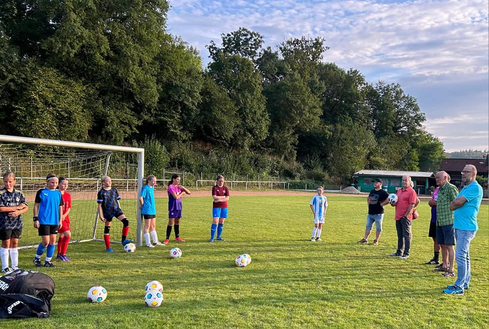 Der 1970 als Abordnung aus unserem FCO gegründete Kienholzclub (KHC) ist aus unserem Dorfleben nicht mehr wegzudenken und seit Jahrzehnten eine große kulturelle Stütze und ein Spendengeber für unser Odenheim. Immer an Fasching am Rosenmontag ziehen die Mitglieder durch die Straßen Odenheims und verkaufen Kienholzbündel für einen guten Zweck. Mit dem Erlös werden dann jährlich Odenheimer Projekte mit Spenden unterstützt. In diesem Jahr wurde unsere stetig wachsende Mädchenfußballabteilung berücksichtigt. Über eine großzügige Spende von 20 Trainings- und Spielbällen durfte sich konkret unsere neugegründete C-Juniorinnenmannschaft freuen. Eine Delegation des Kienholzclubs mit Josef Bolich, Kurt Fellhauer und Rüdiger Frenzl übergab die Ballspenden an freudestrahlende C-Mädchen und ihre Trainer/innen. Vielen herzlichen Dank dem Kienholzclub! (E.W.)