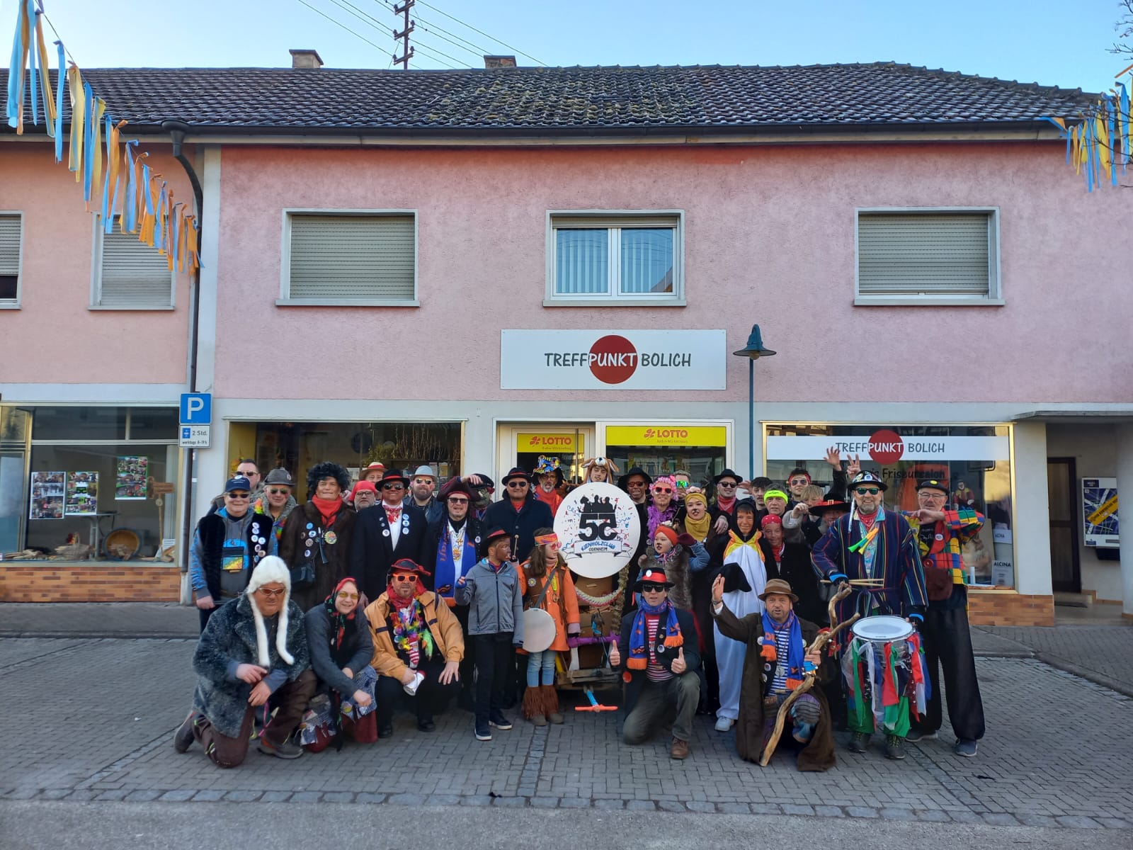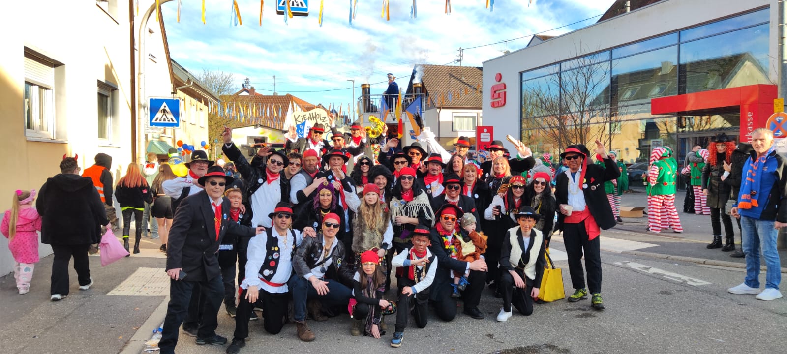 Schöner kann das Wetter für uns Kienholzer nicht sein. Morgens knackig kalt und nachmittags frühlingshafte Temperaturen. Nach zwei Ehrungen für unsere Friedl Bolich und Louis Kessler machten wir uns um kurz nach 8.00 Uhr noch bei Minustemperaturen auf den Weg in Richtung dem Wohngebiet Röte. Nach einem kurzen Zwischenstopp bei Familie Fuchs und den ersten Holzverkäufen teilten wir uns im Wohngebiet auf. Ein reichhaltiges Frühstück bei Frau Vogel und noch ein Berliner oder Brezel bei Familie Blasy und schon machten wir uns auf den Rückweg, um das Wohngebiet zu verlassen. Aber kurz davor hatte zu unserer Überraschung noch Familie Karch auf ein Schmalzbrot eingeladen. Jetzt aber schnell über das Gewerbegebiet Brühl ins Wohngebiet Kies/Wirbelberg. Nach weiteren erfolgreichen Holzverkäufen und zwischenzeitlichen Stärkungen bei Sabine und Andreas sowie unserem Jochum Ludwig ging es an der Katzbacharena vorbei Richtung Ortsmitte. Dort warteten bereits Gabi und Gabi mit leckerem Zuckerkuchen auf uns. Weiter in Richtung Rathaus kehrten wir noch bei Familie Zimmer ein und wurden u.a. mit Schmalz- und Leberwurstbroten sowie diversen Getränken verwöhnt. Nachdem bereits die ersten riefen „Heit seida awa spääät“, konnten wir uns im Bereich Gasthaus Ochsen und Pizzeria Blume nicht so lange aufhalten und der erste Trupp nahm bereits den steilen Aufstieg zur Carl-Dänzer-Schule in Angriff. Dort fielen wir dann bei Familie Maier zum Mittagessen ein (Wurstsalat und Rindswürste!), welche bereits Wohn- und Esszimmer für uns umgebaut hatten – einfach gigantisch. So nach und nach trudelten die restlichen Kienholzer ein, aber auch Claudia Fay mit Ihrem Mann Gerd, aus Huttenheim angereist, gesellten sich zur lustigen Runde. Da durfte zum Schluss natürlich auch der „Butter-fay“-Song nicht fehlen. Obwohl unser Sigges in diesem Jahr nicht dabei war, fand sich mit Bo ein adäquater Ersatz. Sogleich erfolgte der Ausmarsch, jedoch zuvor bedankte man sich noch bei Ingrid, Manfred und dem Rest der Familie, sodass es über die Schulstraße ins Wohngebiet Lerchenberg ging. Nach weiteren guten Holzverkäufen fand der Abschluss in der Edelweiß-Bar unseres Sieber-Addl statt. Auf die Uhr geschaut – ohje, schon wieder 13.00 Uhr – jetzt aber schnell nach Hause zum Kostümwechsel um am großen Rosenmontagsumzug der Odenheimer Karnevalsgesellschaft teilzunehmen. Zum Schluss bedanken wir uns ganz herzlich bei allen Spendern sowie den großen und kleinen „Tankstellen“ und werden über die Geldverwendung berichten.