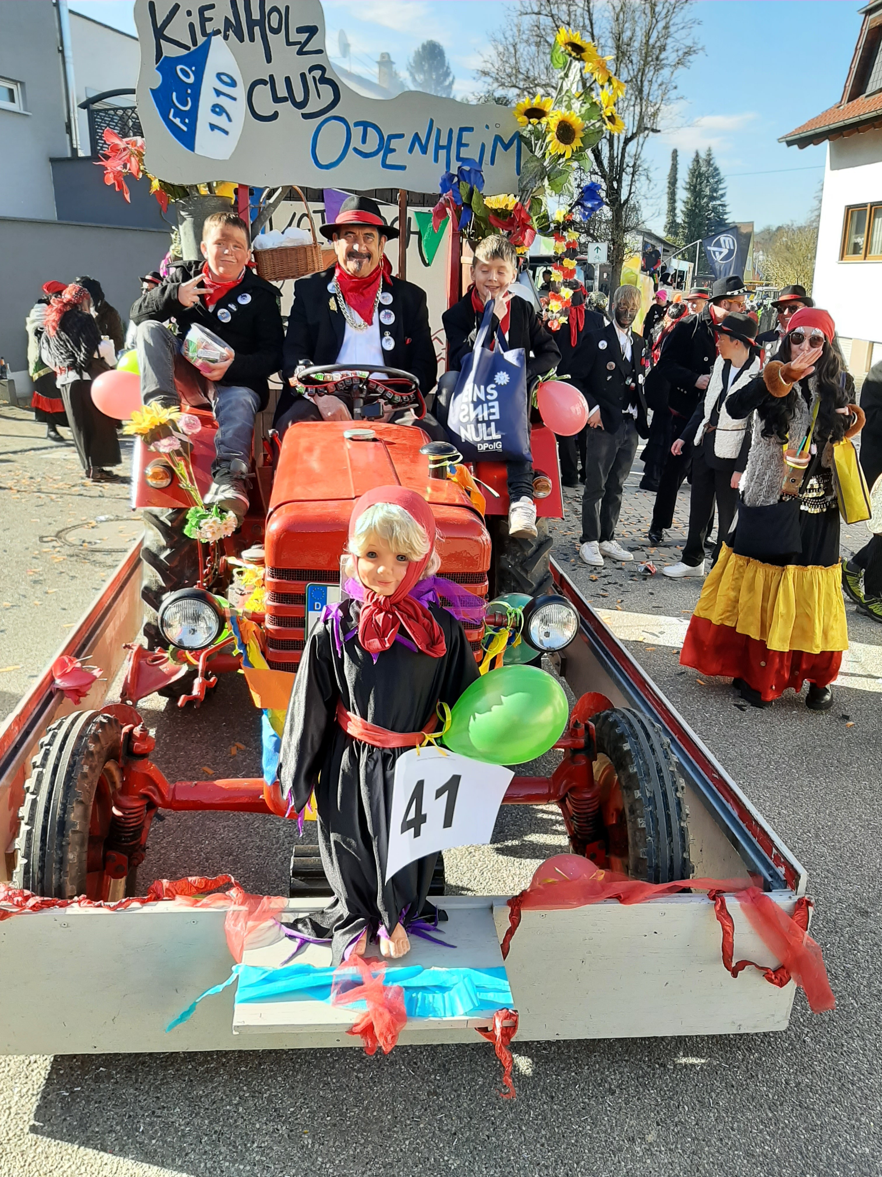 Pünktlich zum Umzugsbeginn fanden sich alle Kienholzer sowie weitere FC´ler, Frauen und Kinder zur Startnummer 41 ein, sodass wir wieder eine tolle und große Truppe waren. Unser Blasy Seppl war mit seinem Traktor samt „Anhänger“ bereits vor Ort. Das tolle Wetter lockte tausende fröhlicher Fastnachter an die Umzugsstrecke – aber auch wir hatten unseren Spaß. Anschließend wurde vor der Katzbacharena noch lange gefeiert, wobei man den einen oder anderen zur späten Stunde auch noch im Blumensaal antraf. (R.F.)