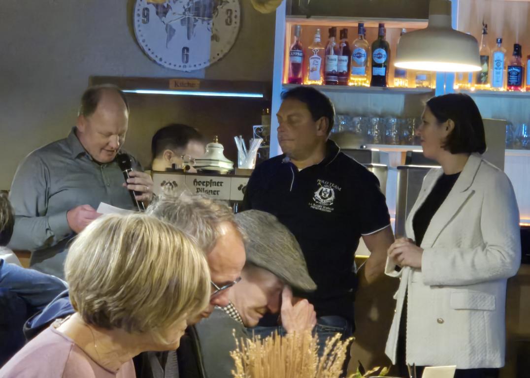 Als weiteres Mitglied des Jahres wurde mit Andy Bayer ein wahrer FCO-Tausendsassa gekürt. Der liebevoll "Schwob" genannte Andy kam vor inzwischen rund 25 Jahren der Liebe wegen nach Odenheim und zu unserem FCO und ist seither eine große Stütze in unserem Verein. Er begleitet seit vielen Jahren das wichtige Amt des Förderkreiskassiers und war in den letzten Jahren maßgeblicher Wegbereiter unserer Mädchenabteilung, die von Jahr zu Jahr gewachsen ist und für die inzwischen 4 Mannschaften am Ligabetrieb teilnehmen, von denen Andy äußerst engagiert auch eine trainiert. Darüber hinaus übernimmt Andy viele weitere Vereinsaufgaben. Louis und Andy sind bei unserem FCO nicht wegzudenken, Teil einer tollen Vereinsgruppe und wir danken beiden ganz herzlich für ihr großes Engagement. Die Weihnachtsfeiergäste spendeten anerkennungsvoll großen Applaus.