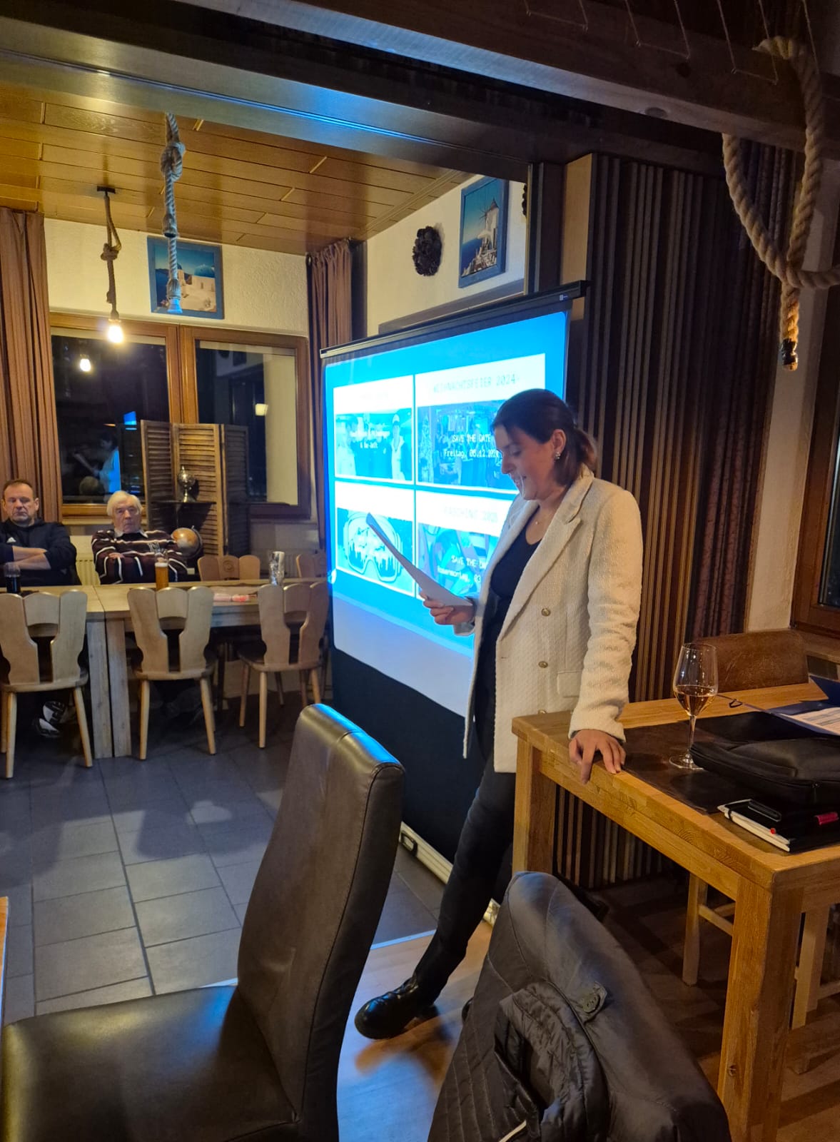 Traditionell sieht die Tagesordnung die Berichterstattung aus den einzelnen Vorstandsbereichen vor. Den Anfang machte Viola mit ihrem Tätigkeitsbericht zum Bereich Verwaltung. Sie erinnerte daran, dass dem Ehrenamt eine ganz besondere Bedeutung zukommt, ohne dieses ist das soziale und gesellschaftliche Leben in Deutschland kaum vorstellbar. Es leistet einen wichtigen Beitrag zum Zusammenhalt und trägt ganz wesentlich zur Förderung des Gemeinwesens und zum Erhalt kultureller Traditionen bei. Viola dankte allen Ehrenamtlichen in unserem Verein und dem Förderverein und verwies darauf, dass es eine Freude ist, mit den knapp 500 Mitgliedern, ob jung oder alt, in Kontakt treten zu dürfen, um im aktiven Austausch konstruktive Lösungen im Sinne des Vereins zu finden. Anschließend gewährte Viola einen Rückblick auf die vergangenen Monate. Die Vorstandskollegen Michael Keßler (Finanzen) und Andreas Mikisek (Jugend) waren zwischenzeitlich zurückgetreten, sodass sich die geschäftsführende Vorstandschaft entgegen ursprünglich 5 nur noch aus 3 Mitgliedern zusammensetzte. In den letzten 12 Monaten traf man zu mehreren Sitzungen zusammen, teilweise im großen Gremium der erweiterten Vorstandschaft, mit der Vorstandschaft des Förderkreises oder mit den einzelnen Ausschüssen. Veranstaltungen konnten durchgeführt und Projekte in Angriff genommen werden: Apres-Ski-Party, Faschingsparty unter der Trägerschaft des AOV gemeinsam mit dem Schützenverein, Schindelberg Hotspot Ironman, Sommerfest des AOV unter der Beteiligung der Ortsvereine, Saisonabschlussfeier Herren/Damen, Saisoneröffnung 2024/25, Jahrmarkt, Katzbachcafé, Rewe-Sammel-Aktion "Scheine für Vereine" u.v.m. Die er- und gelebten Veranstaltungen spiegelten die abteilungsübergreifende Zusammenarbeit und den Zusammenhalt innerhalb der FCO-Familie wieder. Schließlich gewährte Viola auch einen Ausblick auf das, was in diesem Jahr sowie in 2025, unserem 115-jährigen Vereinsjubiläumsjahr, noch so kommen wird. Fest stehen bisher: Weihnachtsfeier am 6. Dezember, davor das Weihnachtssammeln unserer Aktiven, „Apès-Ski Party meets Snow“ am 18. Januar (der Ticketvorverkauf hat bereits begonnen) und die Rosenmontagsfaschingsparty am 3. März gemeinsam mit dem Schützenverein. Viola schloss ihren Tätigkeitsbericht Verwaltung mit folgenden Worten ab: "Ein Ehrenamt ist eine Bereicherung für alle und bedeutet immer auch ein Geben und Nehmen."