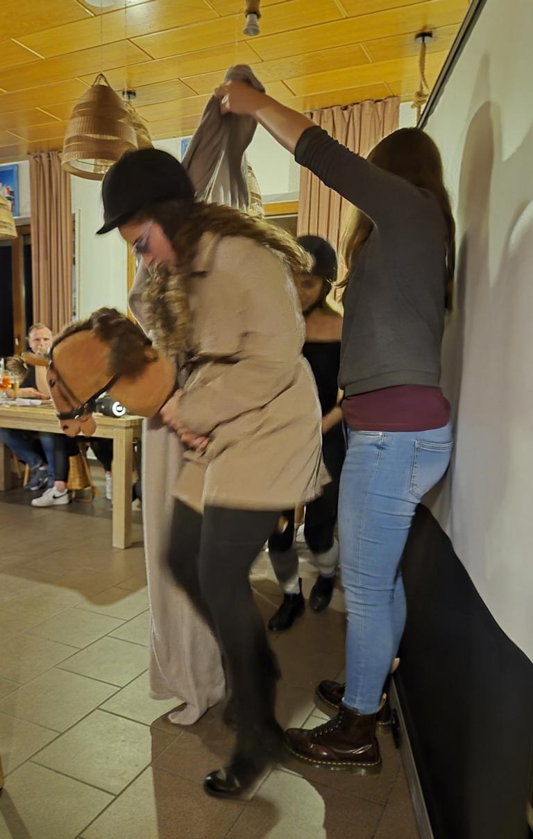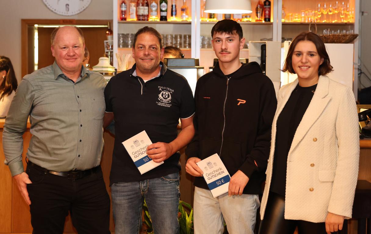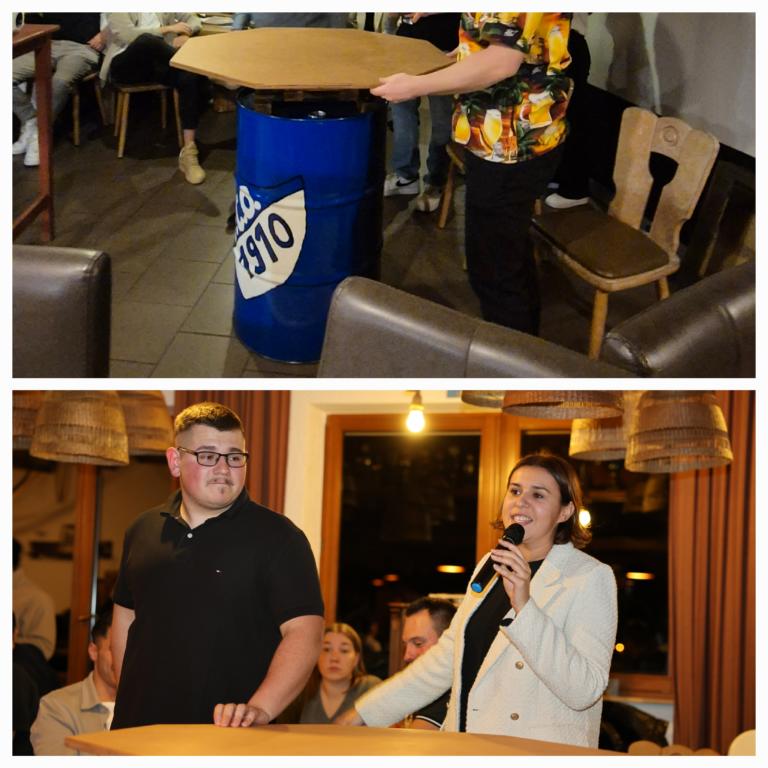 Marco Witte leitete perfekt durch den Abend und bat nun unsere 1.-Mannschaftscracks Julian Beer und Luis Benz nach vorne. Was sollte unsere Topscorer denn erwarten? Marco übertrug beiden einfach den Abtransport der Utensilien vom Damenauftritt. Ganz starke Pointe Marco! ;-)