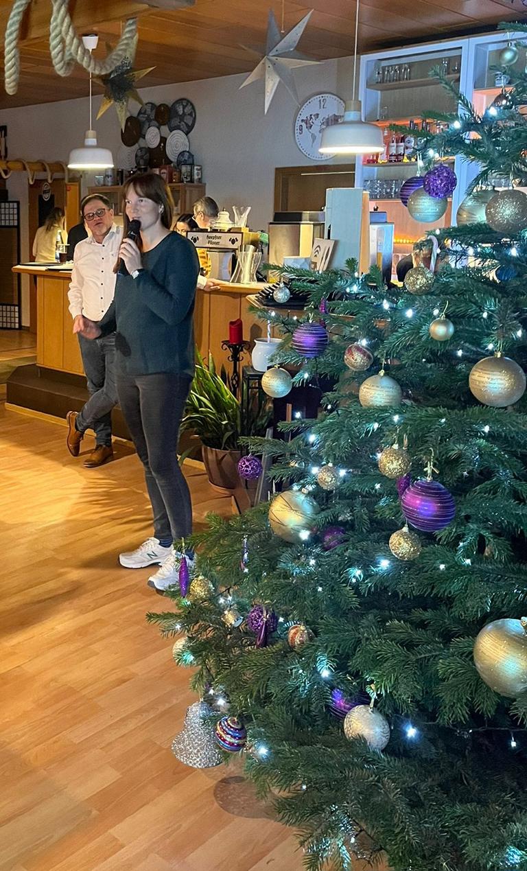 Unsere Vorständin Verwaltung/Finanzen Viola Spitzer zog anschließend die Gäste mit ihrer Weihnachtsansprache in den Bann, die darauf aufgebaut war, in dieser Zeit auch mal innezuhalten und die Werte zu würdigen, die unseren Verein so besonders machen. Hierzu gehören Wertschätzung, Gemeinschaft, Zusammenhalt, Nächstenliebe und Solidarität sowie auch die Freude an Momenten, die wir gemeinsam erleben, schätzen, die wir schaffen und in unseren Herzen tragen