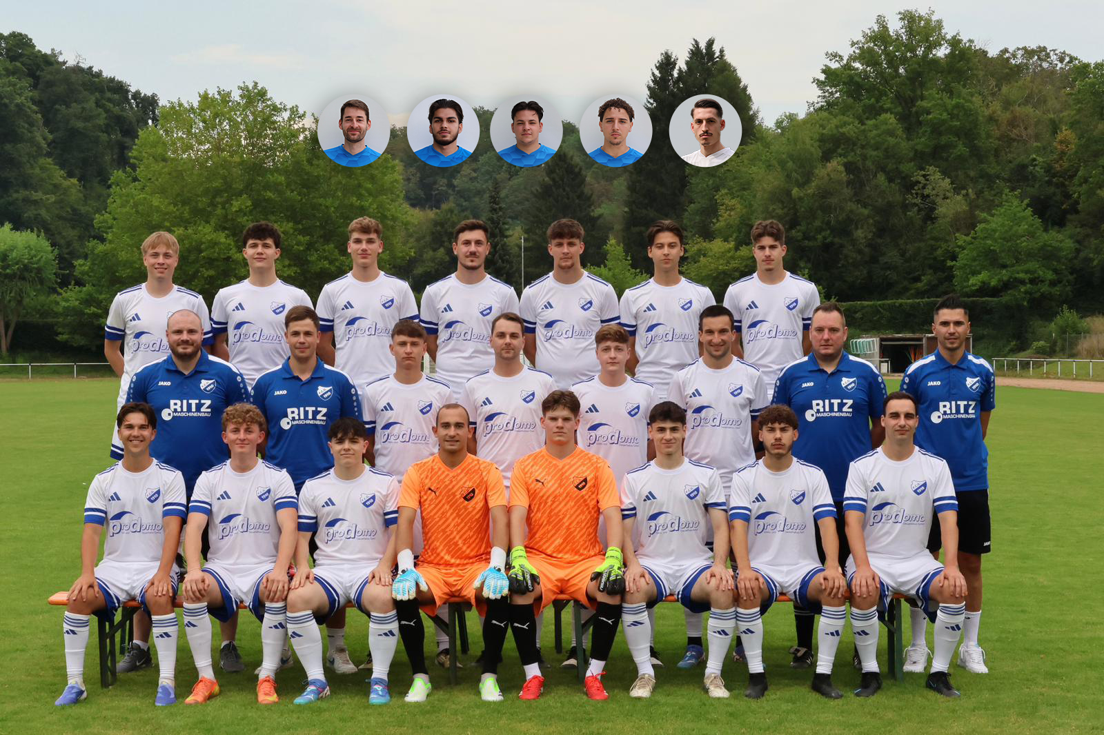 Hintere Reihe v.l.n.r.: Vorstand Verwaltung Viola Ebert, Vorstand Sport Marcus Schäfer, Nahed J.Y. Iqtifan, Sandro Böser, Mohammed R.S. Wadi, Dragan Novakovic, Marvin Kracker, Marco Köhler, Maximilian Leist, Julian Fersching, Co-Spielertrainer Luca Hodecker, Trainer Fabian Fersching, Sportlicher Leiter Marvin Keller, Vorstand Finanzen Michael Keßler.