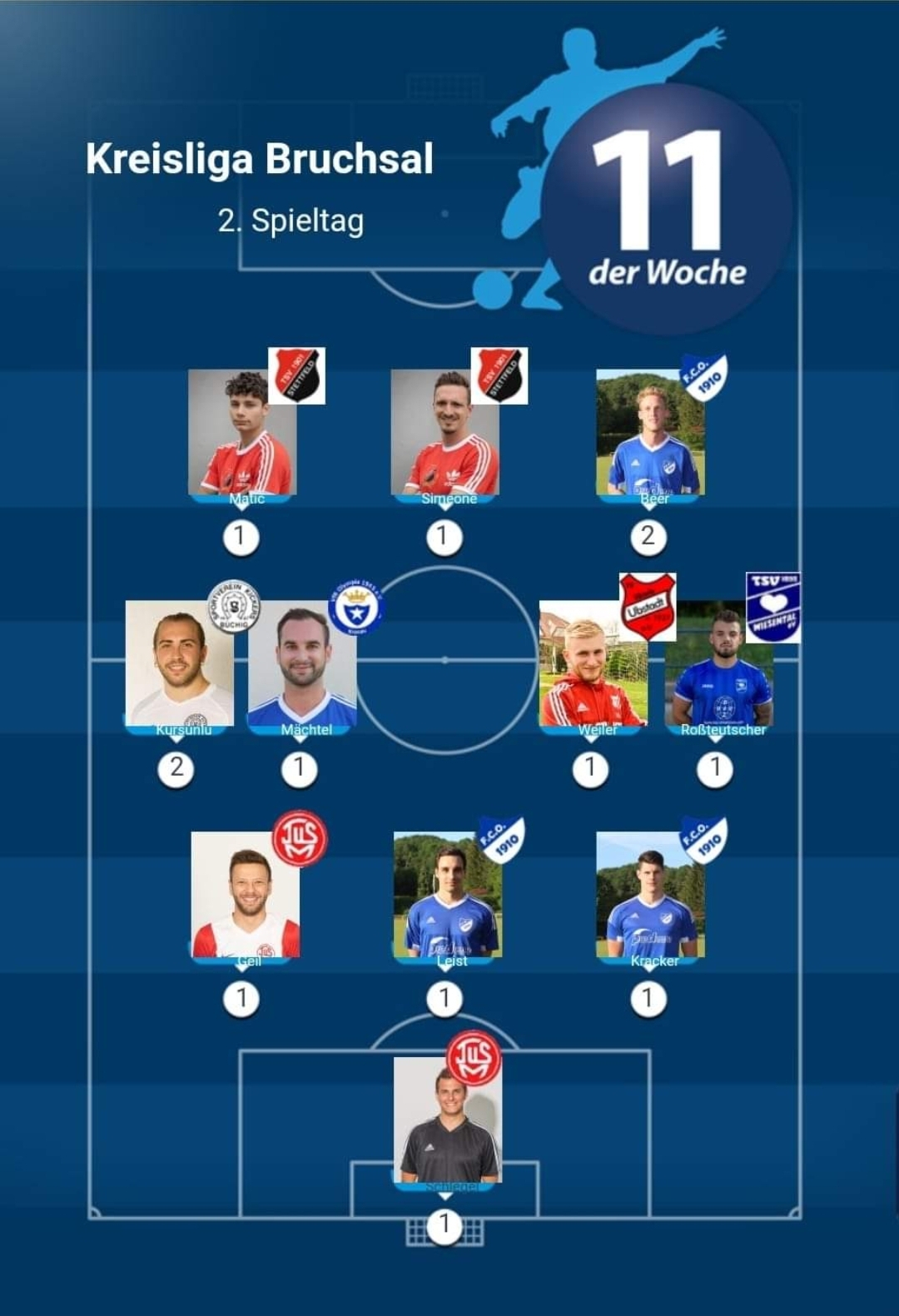 Auf dem Fußballonlineportal FuPa Bruchsal wird je Liga immer die „Elf der Woche“ bestimmt, so auch für die Kreisliga Bruchsal, in der unser Herrenteam I an den Start geht.