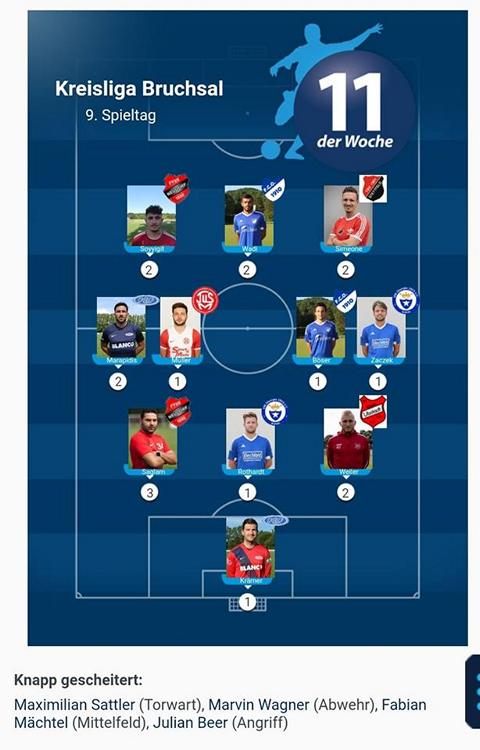 Auf dem Fußballonlineportal FuPa Bruchsal wird je Liga immer die „Elf der Woche“ bestimmt, so auch für die Kreisliga Bruchsal, in der unser Herrenteam I an den Start geht.