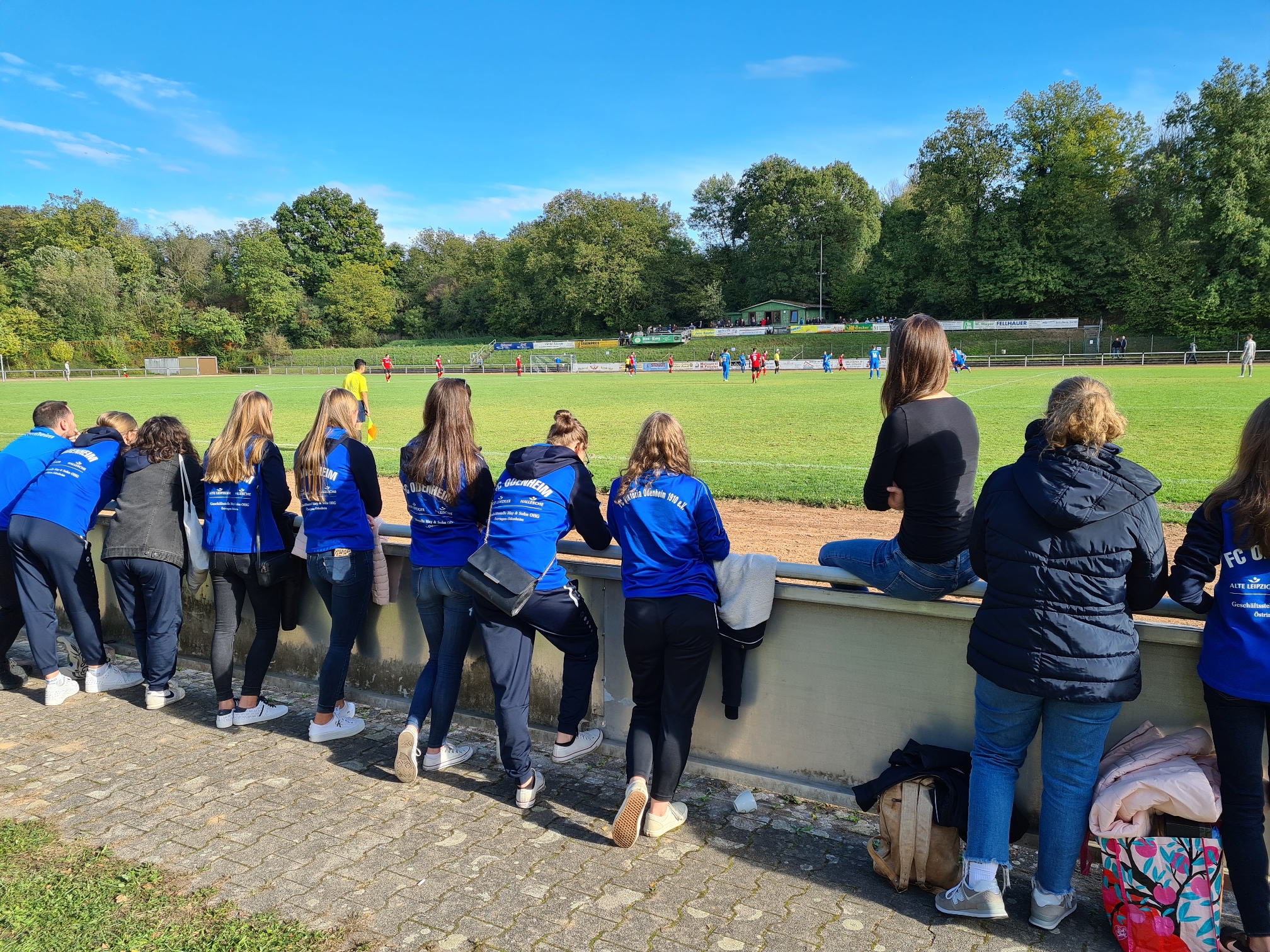 Vor guter Kulisse, darunter auch unsere FCO-Damenmannschaft, die „13 Damen stark“ bereits zuvor die 2. Mannschaft unterstützt hatte (siehe Foto unten. Das Zusammengehörigkeitsgefühl in unserem Verein ist einfach mega!), startete unsere Elf eine starke Anfangsoffensive. Nach gutem Zusammenspiel von Marvin Wagner und Kilian Lamsfuß kam Neuberger in der 4. Minute zu einem ersten Torabschluss, den der Neudorfer Keeper jedoch sicher meisterte. Die erste dicke Möglichkeit in Minute 6, als nach einem schönen Spielzug der von Beginn an sehr agile und mit neuer schnittiger Frisur auffallende Mohammed R.S. Wadi über links durchgebrochen war und das Spielgerät mit Schmackes nach innen beförderte. Dieses verpasste der mitgelaufene Neuberger am Fünfmeterraum nur um Zentimeter. In Minute 10 eine gute Flanke von Nahed J.Y. Iqtifan auf den Kopf von Nico Sinibaldi, der das Tor jedoch verfehlte. In der selben Minute dann auf der Gegenseite zdie u diesem Zweitpunkt wie aus dem Nichts plötzlich große Möglichkeit für die Gäste, als der Ball, aus ca. 17,18 Metern abgefeuert, an den linken Torpfosten klatschte. Durchatmen … Unsere Elf jedoch weiterhin am Drücker und mit weiteren Vorstößen, die zumindest zunächst noch nicht den erhofften Erfolg einbrachten. Eine weitere sehr gute Möglichkeit bot sich in Minute 18, als Manuel Deponte nach einer Ecke nochmals zur Flanke gekommen war und Kracker zentral zum Kopfball. Mit den Fingerspitzen lenkte Neudorfs starker Keeper den Ball um den Pfosten.Die nächste Deponte-Ecke fand am langen Pfosten den Kopf von Hodecker, der links am Tor vorbeiköpfte. Zwischen den Minuten 25 und 30 ein kurzes Aufflackern der Gäste, die hier kurzzeitig ein Übergewicht besaßen und uu zwei Chancen kamen (28., 29.). In beiden Szenen bekam unsere Defensive den Ball nicht richtig weg. In Situation 1 landete die Kugel gar im Netz, der Treffer wurde wegen einer Abseitsstellung jedoch aberkannt. In Situation 2 tankte sich ein Neudorfer über die linke Seite parallel zur Toraußenlinie durch und setzte seinen Abschluss aus spitzem Winkel ans Außennetz. Mit einer ganz starken Defensivaktion erkämpfte sich Iqtifan in der 34sten den Ball und steckte auf den perfekt einlaufenden Wadi durch, der jedoch wegen Abseits zurückgepfiffen wurde – umstritten. Doch auch Neudorf war inzwischen besser im Spiel und Deponte konnte in der 36. Minute in höchster Not gerade noch im letzten Moment klären – dies aber richtig stark. Sofort lief der Odenheimer Konter und Lamsfuß zog aus spitzem Winkel ca. 2 Meter nebens Neudorfer Tor ab. Die Zuschauer sahen gerade in Hälfte 1 eine sehr muntere und aus Sicht des Berichterstatters gutklassige Kreisligapartie, in der unser FCO dann in Minute 41 die riesige Doppelmöglichkeit zur Führung besaß. Wadi steuerte in großen Schritten allein aufs Gästetor zu, blieb beim Umkurven des Torhüters jedoch an diesem hängen. Den Nachschuss brachte Neuberger aufs Tor, der wirklich starke Neudorfer Keeper war jedoch schon wieder zurückgeeilt und parierte auch diesen Schuss stark. Als man schon mit einem torlosen Pausenremis rechnen musste, dann in Minute 45 nochmals Einwurf für unsere Viktorianer. Lamsfuß brachte diesen weit in den Strafraum, wo Kracker hochstieg und den Ball entscheidend verlängerte. Am langen Pfosten lauerte Neuberger, nahm die Kugel kurz an und vollendete zur umjubelten 1:0-Führung.