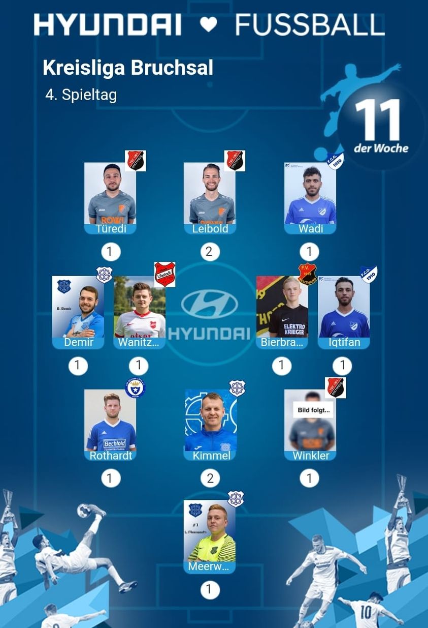 Auf dem Fußballonlineportal FuPa Bruchsal wird je Liga immer die „Elf der Woche“ bestimmt, so auch für die Kreisliga Bruchsal, in der unser Herrenteam I an den Start geht.