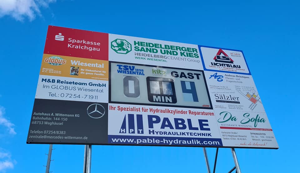 Pünktlich zum Anpfiff zog ein kurzer Regenschauer über das mit einer vorbildlichen Anzeigetafel geschmückte Sportgelände des letztjährigen Aufsteigers hinweg. Gerade waren diverse Regenschirme aufgespannt, konnte der FCO-Anhang auch bereits jubeln. Nach der schon zweiten Ecke von Nico Sinibaldi war im Strafraum zunächst Mohammed R.S. Wadi zum Schuss gekommen, welcher von der vielbeinigen TSV-Abwehr jedoch zunächst geblockt werden konnte. FCO-Spielertrainer Luca Hodecker roch die Lunte, stand goldrichtig und verwandelte den Nachschuss zur frühen Führung (2. Minute). Nicht minder groß als der Jubel der mitgereisten FCO-Zuschauer der der Mannschaft. Verfolgt/begleitet von allen Mannschaftskameraden eilte Hodecker freudestrahlend zur eigenen Bank und herzte insbesondere Torwarttrainer und Ersatzkeeper Dennis Braun, dem er zuvor bei der Anfahrt zum Spiel seinen Treffer prophezeit hatte. Unser Team war von Beginn an zu mehr als 100 Prozent präsent und überraschte die Gastgeber damit sichtlich. in Minute 8 drang Marvin Wagner mit schönem Solo entschlossen in den Strafraum ein, überlief hier zwei Wiesentaler, konnte aber im allerletzten Moment gerade doch noch ausgebremst werden. Noch in der gleichen Minute ein starker Abschlag von FCO-Keeper Andre Just auf den in Abwesenheit von Silva und Beer wieder als Kapitän aufgelaufenen Adrian Neuberger. Auf nassem Geläuf nahm das Spielgerät etwas zu viel Fahrt auf, sonst wäre dies bereits die nächste gute FCO-Möglichkeit gewesen. Angriffsversuche der Wiesentaler wurden jeweils schnell unterbunden und unser Mittelfeld besaß im Spielzentrum die absolute Hoheit. Immer wieder wurden Bälle erobert und schnell in die Spitze gespielt. So auch in Minute 11, als Spielertrainer #2 Kilian Lamsfuß Wadi auf die Reise schickte. Dieser steuerte allein auf den Torhüter zu, scheiterte aber an dessen Fußabwehr. Klar war dies eine ganz dicke Chance, Wadi sollte diese aber schnell abhaken und im weiteren Verlauf der ersten Spielhälfte zur absoluten Topform auflaufen. Nur sechzig Sekunden später wieder unser FCO, dieses Mal über die rechte Angriffseite. Wadi, von Wagner eingesetzt, mit sehr guter Flanke auf Neuberger, der aber leider einen Tick zu spät kam. In Minute 15 dann aber doch das 2:0, welches in Entstehung und Vollendung die Entschlossenheit und Spielfreude unseres FCO so richtig abbildete. Wagner hatte den Ball an der Mittellinie erobert und trieb diesen, rechts und links begleitet von Wadi und Neuberger, bis kurz vor die Strafraumgrenze. Zum idealen Zeitpunkt das Zuspiel auf Wadi, der per Direktspiel quer für Neuberger auflegte. Unser Kapitän vollendete trocken zur Zwei-Tore-Führung. Unser FCO hatte noch lange nicht genug und kam nur eine Zeigerumdrehung später zur nächsten sehr guten Möglichkeit. Wadi, dieses Mal über links, zog ab und das Leder zischte nur knapp am langen Torpfosten vorbei. Wiederum nur kurze Zeit später drang der wie entfesselt aufspielende Wadi von rechts in den Strafraum ein und stürzte nach Klammern seines Gegenspielers zu Boden. Dem insgesamt sehr gut leitenden Schiedsrichtergespann aus Hoffenheim war dies für einen Elfmeter zu wenig (18.). In der 23. Minute Freistoss für unseren FCO an der Strafraumgrenze in halblinker Position. Neuberger trat an, feuerte die Kugel aber mit etwas zu wenig Schmackes genau auf den TSV-Torhüter ab, sodass die vor der Ausführung von Dennis Braun an der FCO-Bank ausgesprochene Metapher hier absolut zutreffend war ;-) Erst in Minute 25 erste Aufregung auf der Gegenseite, als sich unser Keeper Just etwas leichtsinnig gezeigt hatte und die Wiesentaler so in der Folge zu ihrem ersten Torabschluss kamen. Hier zeigte sich Just jedoch glänzend auf seinem Posten und klärte per Fußabwehr. Kurz darauf wieder unser FCO mit einem sehenswerten Angriff. Nahed J.Y. Iqtifan bediente Wadi, der sich zwar zu weit nach rechts abdrängen ließ, aus spitzem Winkel aber doch noch zum Abschluss kam. Der Torhüter klärte zur Ecke. Diesen zirkelte Sinibaldi exakt auf den Kopf des einlaufenden Wadi, der zum 3:0 einnickte. Der TSV-Keeper sah hier vermeintlich nicht gut aus, der wuchtige Kopfball aus kurzer Distanz war jedoch sicherlich auch nicht leicht zu halten (27.). Unser FCO weiterhin wie aus einem Guß und kurz nach dem 3:0 mit der nächsten dicken Chance. Wadi mit einem überragenden Zuspiel auf Neuberger, der sich unter Bedrängnis eines Gegenspielers zwar behauptete, dann aber vor dem Torhüter etwas zu unentschlossen abschloss und somit an diesem scheiterte. In der 29sten dann plötzlich ein gefährlicher Flatterball aufs FCO-Gehäuse. Just parierte unorthodox aber sehenswert per Fußabwehr und damit richtig stark. Nach der zwischen den Minuten 28 und 36 längsten Phase ohne FCO-Chance dann in eben der 36sten die nächste Großchance für unsere Viktorianer. Nach einem richtig tollen Angriff über Wadi und Sinibaldi fand die Flanke des Letztgenannten wieder den fleißigen Neuberger, der in aussichtsreicher Position aber einmal mehr am Keeper scheiterte. Drei Minuten später dann aber doch das überfällige 4:0, dieses Mal weniger herausgespielt, da vielmehr ein Geschenk der Heimmannschaft. Zwei TSV´ler behinderten sich bei einem Klärungsversuch gegenseitig, der clever spekulierende Wadi nahm das Leder auf und mit und vollendete zur Vier-Tore-Führung. Und immer weiter gings Richtung Heimtor … In der 41sten gleich zwei weitere gute Offensivaktionen unserer Odenheimer. Zunächst Wadi mit gutem Zuspiel Richtung Neuberger, der TSV-Keeper jedoch um Sekundenbruchteile eher am Ball. Dann Wagner auf Neuberger im Strafraum, der zum halblinks gut postierten Wadi, der dieses Mal das Spielgerät aber weit am Tor vorbeibeförderte. In der 43sten einer der wenigen gefährlichen Vorstösse der Gastgeber mit einem abgefälschten und damit nicht ungefährlichen Abschluss aufs Odenheimer Tornetz.