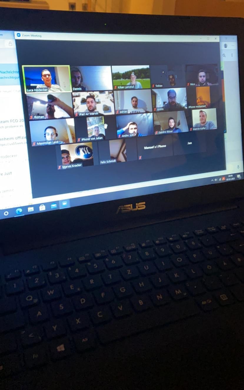 Unsere 1. Herrenmannschaft traf sich am 07.01.2021 zum Onlinetreff. Das Trainerteam um Luca Hodecker, Kilian Lamsfuß und Torwarttrainer Dennis Braun, unser Sportlicher Leiter Marvin Keller sowie die Spielausschussmitglieder Roman Spitzer und Jan Bayer überbrachten ihren Spielern die besten Neujahrswünsche und gaben einen Ausblick sowie eine Einschätzung betreffend der nächsten Wochen und Monate (insbesondere Trainings-/Laufübungen während des Fußball-Lockdowns).