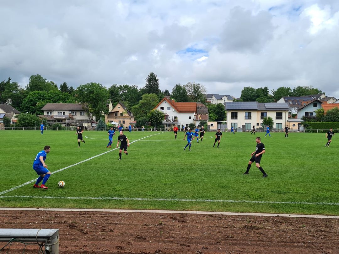 Munter ging's gleich los und Mohammed R.S.Wadi prüfte in Minute 2 gleich mal Eschelbachs Schlussmann. Auf der Gegenseite war unser Keeper Andre Just erstmals in Minute 6 gefordert. Unser FCO von Beginn an mit mehr Ballbesitz, die Eschelbacher schalteten bei eigenem jedoch schnell um und versuchten zügig zum Torabschluss zu kommen. So blieb den Gastgebern in Minute 12 die bis dato beste Möglichkeit vorbehalten, als deren sehr auffälliger Kapitän Heinrich unseren Schlussmann überlupfte und das Spielgerät nur knapp am rechten Torpfosten vorbeiging. Auf der Gegenseite zielte Neuberger in der 25ten knapp übers Tor. Selbiger zeigte sich dann aber in der 30. Minute doch für die Odenheimer Führung verantwortlich. Und was für ein Tor! Halblinks an der Strafraumgrenze legte sich unser Co-Spielertrainer das Leder zum Freistoß zurecht und zirkelte es äußerst sehenswert per Vollspann exakt ins obere rechte Tordreieck. Da passte zwischen Pfosten und Latte kein Blatt Papier dazwischen. Leider währte die FCO-Führung nicht lange, ob einer kollektiven Unaufmerksamkeit kamen die Eschelbacher nämlich nur vier Minuten später aus halblinker Position im Strafraum zum Ausgleich. Trotz spielerischen Vorteilen unseres FCO blieb die Heimmannschaft stets gefährlich und unser Torhüter Just musste in der 39ten einen Nachschuss parieren. In der 41. Minute auf der Gegenseite fast die erneute Führung für unseren FCO, als der Ball nach einer Ecke durch Kapitän Andre Silva von rechts an "Freund und Feind" vorbeiflog und Neuberger am langen Pfosten nur einen Tick zu spät kam. Gemessen an den Torchancen ging es mit einem leistungsgerechten Remis in die Pause.