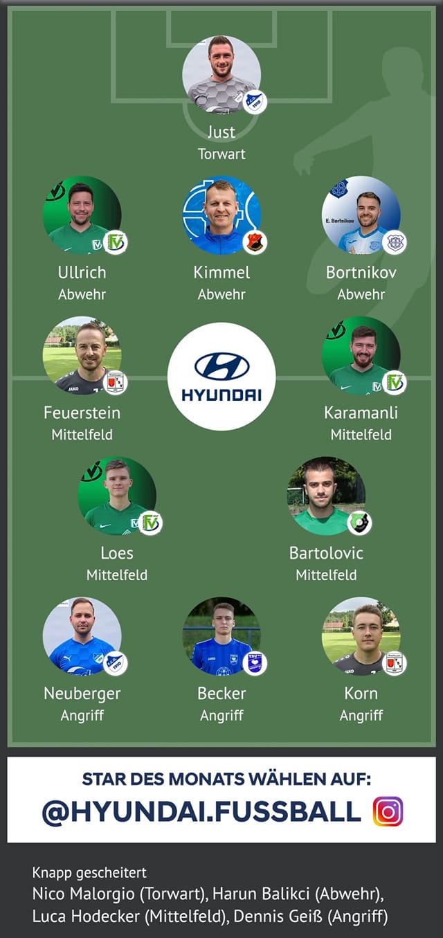 In die Elf der Woche für Spieltag Nr. 1 (2:1-Sieg in Flehingen) wurden von unserem FCO zwei Mann berufen: Torhüter Andre Just und 1:0-Torschütze Adrian Neuberger. Zudem nur knapp gescheitert ist Luca Hodecker.