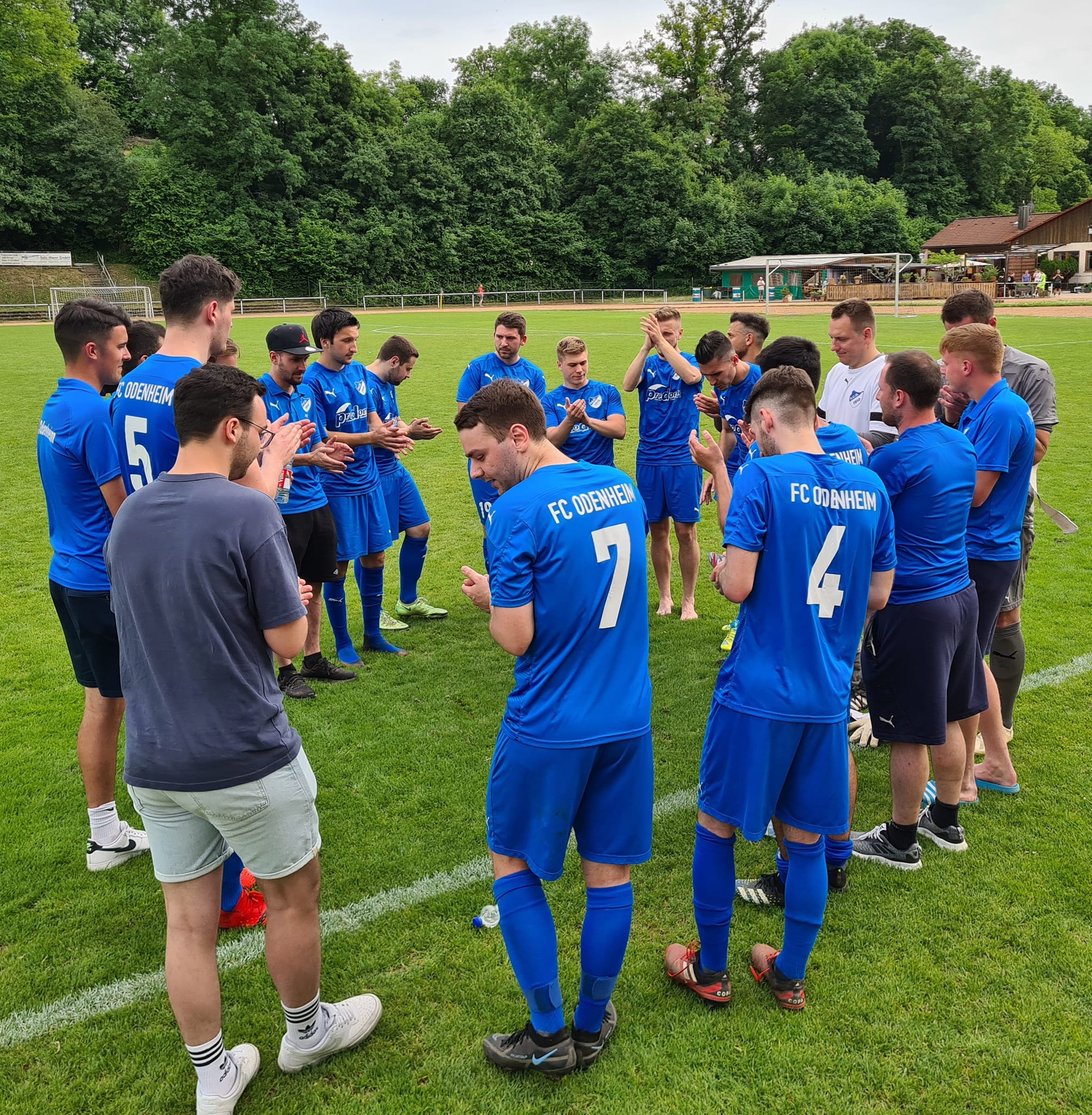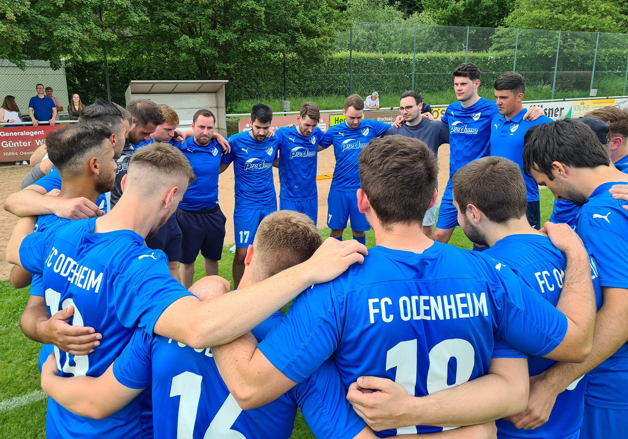 Es war klar: Mit einem Sieg konnte sich unser FCO am drittletzten Spieltag aus eigener Kraft den Klassenerhalt sichern. Entsprechend motiviert und engagiert übernahm unsere Elf von Beginn an das Kommando, gewann die ersten Zweikämpfe und spielte mutig nach vorne. In Minute 4 die erste starke Szene, als Wagner mit nur einem Kontakt einen sehenswerten Schnittstellenpass auf Wadi spielte. Der Odenheimer Angreifer behauptete sich gegen seinen Gegenspieler und umkurvte den Torhüter, wurde dabei aber von diesem zu Fall gebracht. Der Schiedsrichter zeigte sofort auf den Elfmeterpunkt. Wadis Kontrahent verletzte sich in dieser Szene und musste behandelt werden. Zeit genug für den Schiedsrichter, sich nochmals mit seinem Linienrichter zu besprechen, der sich für ein Foulspiel von Wadi aussprach, worauf der Elfmeter wieder zurückgenommen wurde. Aus FCO-Sicht natürlich unverständlich und bitter, es galt jedoch, sich damit nicht lange aufzuhalten, sondern sich die nächste Chance zu erarbeiten. Diese folgte bereits in Minute 7, als Greguric von rechts geflankt hatte, Zimmermann links im Strafraum das Leder annahm und abschloss, leider rund einen Meter links am Tor vorbei. Nach knapp 10 Minuten musste Neuthards Abwehrspieler Dietrich verletzungsbedingt frühzeitig passen. Dies verschlimmerte das in den letzten Wochen gerade in der Abwehr aufgetretene Verletzungspech der Gäste, welches auch mitentscheidend dafür sein dürfte, dass Neuthard durch zuletzt vier sieglose Spiele die monatelange Tabellenführung eingebüßt hat. Unser Team weiterhin in der Vorwärtsbewegung und in der 10. Minute mit dem nächsten gut vorgetragenen Angriff. Flanke Greguric von rechts, wieder lang in den Strafraum. Hodecker legte von dort per Kopf auf und Böser wagte die Volleydirektabnahme. Technisch richtig hochwertig dieser Schuss, der nur knapp übers Gästegehäuse zischte. Eine Minute später dann die 1:0-Führung. Greguric holte sich rechts an der Strafraumgrenze den Ball zurück, bediente auf rechts Iqtifan und dessen butterweiche Flanke köpfte in der Box Wadi ins lange linke Toreck. Unser FCO blieb dran und kam in der 14. Minute zur nächsten guten Szene. Depontes Freistoßflanke köpfte Kracker auf Höhe des Fünfmeterraums. Die Neutharder Hintermannschaft konnte die aufkommende Gefahr bereinigen. Der FVN fand offensiv in der ersten halben Stunde überhaupt nicht statt, sodass insoweit nur von einem Schussversuch aus der 2. Reihe berichtet werden kann, der drei bis vier Meter übers FCO-Tor flog (19.). In Minute 22 ein starker Ball von Sinibaldi entlang der rechten Außenbahn auf Wadi. Dieser drang in den Strafraum ein, kam aber nicht zum Abschluss. Der Winkel wurde immer spitzer und Wadi wurde schließlich noch abgedrängt. Unser Team verschob richtig gut, stellte perfekt zu und machte es gegen Ball und Gegner richtig gut. Neuthard musste immer wieder abbrechen und zurückspielen oder sein Heil in langen Flugbällen suchen, die dann sicher abgefangen wurden. In der 26. Minute die Großchance zum 2:0: Böser und Wagner hatten sich an der Mittellinie gemeinsam den Ball erkämpft und Böser diesen zu Iqtifan weitergeleitet. Dieser schickte Wadi auf die Reise. Aus spitzem Winkel machte Odenheimes Stürmer eigentlich alles richtig und schloss gut ins lange Toreck ab. Neuthards Torhüter riss im letzten Moment die rechte Hand nach oben und rettete ebenso stark zur Ecke. Nach dieser probierte es Wagner aus der 2. Reihe – deutlich vorbei. Sechzig Sekunden später erkämpfte sich Wadi im gegnerischen Strafraum den Ball, bekam dann aber beim Abschluss zu wenig Druck hinter diesen, sodass der FVN-Keeper das Spielgerät sicher aufnehmen konnte. Nach einer halben Stunde fanden die Neutharder etwas besser ins Spiel, unser FCO hatte die Partie aber weiterhin im Griff. In Minute 32 dann doch ein erster nicht ungefährlicher Angriff der Gastmannschaft über rechts. Die Hereingabe klärte Hodecker. In Minute 36 eine Szene, die zumindest von weitem nach einer weniger schönen Aktion eines Neutharder Spielers aussah und auch zu einer kurzen Rudelbildung mit Geschubse führte. Der umsichtige Schiedsrichter beruhigte die Situation auch ohne Zücken einer Karte. Die nächste gute Möglichkeit für unsere Mannschaft in Minute 38. Greguric mit Zuspiel auf den rechts im Strafraum freigelaufenen Wagner. Dessen Schuss ins rechte Eck lenkte der Torhüter zur Ecke. In der 40sten einmal mehr ein gewonnener Zweikampf im Mittelfeld, dieses Mal von Hodecker, der damit Wadi einsetzte. Dieser weiter zu Iqtifan, was ein 2-gegen-1-Duell der beiden gegen einen Neutharder zur Folge hatte. Leider nicht gut ausgespielt und Chance damit vertan. Auf der Gegenseite in Minute 41 plötzlich aus dem Nichts die Riesenchance für den FV Neuthard. Dieser hatte sich zentral durchkombiniert und einen seiner Angreifer eingesetzt, der urplötzlich vor Just auftauchte. Unser Zerberus stach die Eins-gegen-Eins-Situation stark und klärte zur Ecke. In der 45. Minute, kurz vor der Pause, wählte unsere Defensive das besonnene Aufbauspiel und ließ den Ball in den eigenen Reihen laufen. Es folgte nun die eingangs erwähnte Szene, die so nicht alle Tage vorkommt. Völlig ungezwungen missglückte plötzlich ein Zuspiel auf Torhüter Just. Neuthards Eberhard war der Nutznießer und lief mit dem Ball unter voller Kontrolle zentral und mutterseelenallein aufs FCO-Tor zu. Der Neutharder Angreifer musste nur noch einschieben und so mancher Odenheimer Zuschauer wandte sich bereits verärgert ab. Sollten die Gäste nun ausgerechnet so und kurz vor der Pause zum Ausgleich kommen? Doch was geschah? Eberhard setzte die Kugel doch tatsächlich an den rechten Pfosten! Sachen gibt´s, die gibt´s eigentlich gar nicht. Halt doch, zumindest ein weiteres Mal: 1986 war´s, als Dortmunds Frank Mill in München die größte Bundesligachance aller Zeiten ähnlich vergeben hatte. Unstrittig in dieser Szene riesiges Glück für unsere Mannen, welches sich diese aufgrund ihrer Leistun