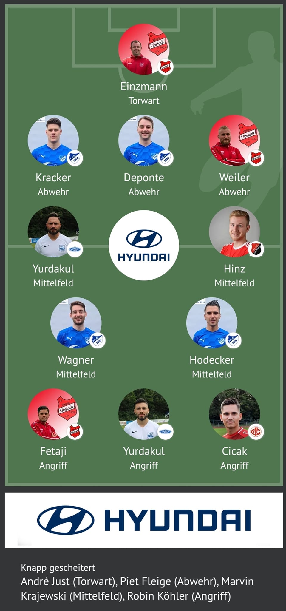 In die Elf der Woche für Spieltag Nr. 24 (3:0-Sieg gegen FV Neuthard) wurden von unserem FCO nun gleich vier Spieler berufen: Marvin Kracker, Manuel Deponte, Marvin Wagner und Luca Hodecker. Zudem nur knapp gescheitert am Einzug in die Elf der Woche ist Andre Just.