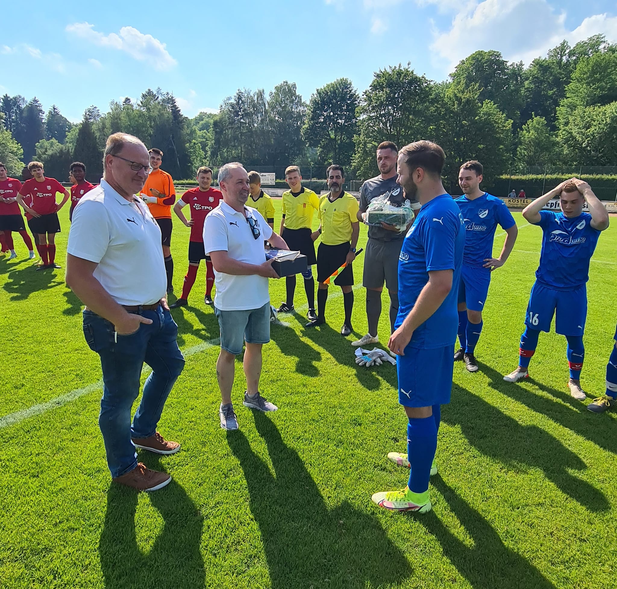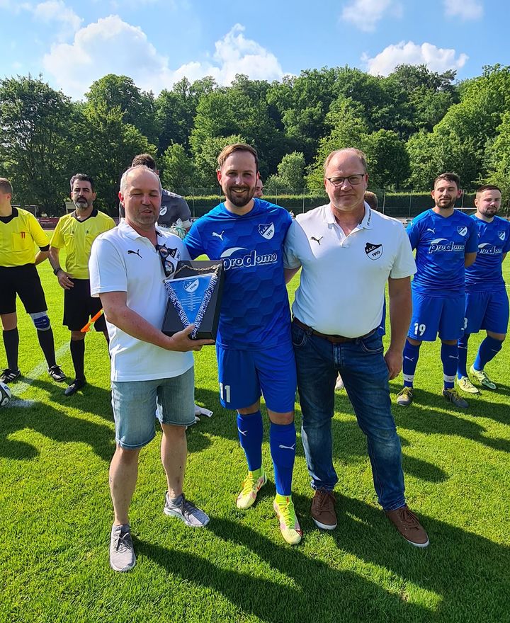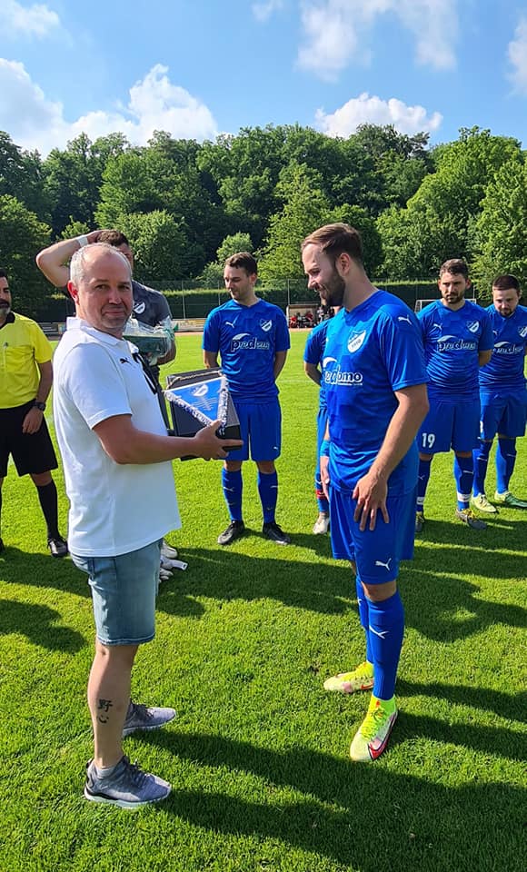 Mit Adi verlässt unseren Verein ein großer Sportsmann, sehr guter Kamerad und Freund. Gebührend wurde er am 04.06. vor dem letzten Kreisligaspiel vom Vorstandsduo Marcus Schäfer/Torsten Witte verabschiedet (siehe Fotos), bei seiner Auswechslung in der 88. Minute mit verdientem Applaus bedacht und am Donnerstagabend, den 09.06., beim Abschlussessen auch nochmals von Spielertrainer Luca Hodecker und dem Sportlichen Leiter Marvin Keller gewürdigt.