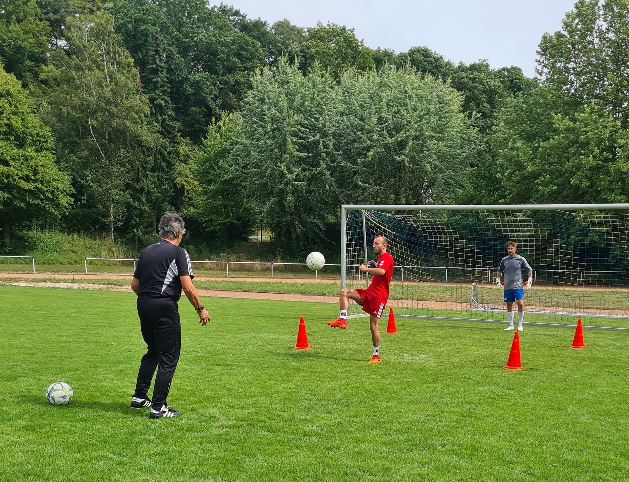 Unsere 1. Herrenmannschaft ist bekanntlich am 8. Juli in die Sommervorbereitung auf die Saison 2023/24 gestartet und traf sich in den ersten knapp 2 Wochen zu 5 Trainingseinheiten und einem Testspiel, ehe Trainer Alex Runne, Co-Spielertrainer Timo Teufel und Torwarttrainer Hermann Boppel für den 21. bis 23. Juli zu einem dreitägigen Trainingslager/-Wochenende im heimischen Siegfriedstadion eingeladen hatten.