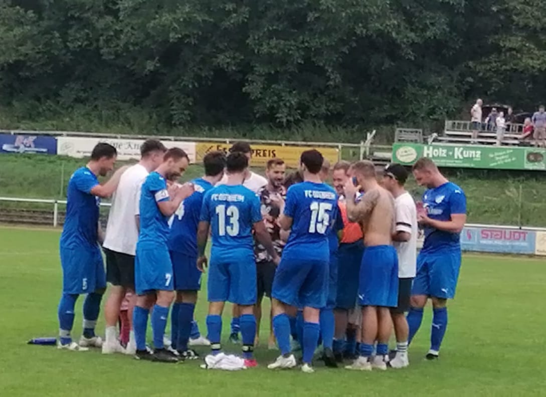 Im zweiten Durchgang investierten die Gäste noch mehr in ihre Offensive. Dadurch eröffneten sich für uns aber auch Möglichkeiten zum Kontern. Leider blieb es hierbei nur bei Ansätzen, da diese nicht ganz sauber zu Ende gespielt wurden. Ubstadt kam zu einigen guten bzw. zwei sehr guten Einschussmöglichkeiten, als wir in der Entstehung auf den Außen einige Male zu weit weg von den Gegenspielern waren. Dies war aber auch dem hohen Tempo der Gäste sowie der Tatsache geschuldet, dass in dem fordernden Spiel mit zunehmender Dauer auch die Kräfte nachließen. So kam der Kontrahent ein ums andere Mal gefährlich hinter unsere Kette. Die daraus folgenden Bälle in die Mitte waren brandgefährlich und schwer zu verteidigen. Mit Geschlossenheit, Kompaktheit, vereinten Kräften und unserem Rückhalt Holler gelang es jedoch, das eigene Tor zu verteidigen. Trotz Leidenschaft und Willen hätten wir uns über einen zwischenzeitlichen Ausgleich wohl nicht beschweren dürfen. In der 74sten FCO-Wechsel Nr. 2, Mehmet Güzel für 1:0-Torschütze Yildirim. Mitten in die größte Drangphase des Kreisligisten dann aber ein Konter und daraus resultierend eine Ecke. Diese trat Sinibaldi gewohnt listig. Laub lief gut ein und köpfte das Spielgerät entgegen der Laufrichtung vom Keeper ins Tor = 2:0 (78.) Laub feierte seinen Treffer stilecht, alle Mann stießen zur Jubeltraube hinzu und die Erleichterung war unverkennbar. Gegen die nun auch nicht mehr wirklich an eine Wende glaubenden Gäste hatte unser FCO danach das Geschehen wieder im Griff und spielte das Ganze recht souverän runter. In den Schlussminuten plus 3 Minuten Overtime gab es in der 85sten noch auf beiden Seiten zwei Strafraumszenen. Zunächst köpfte Innenverteidiger Marcel Glodschmidt eine Sinibaldi-Ecke übers Tor und auf der Gegenseite parierte Holler gegen einen Ubstädter. Vielleicht hätte unser Team noch den einen oder anderen Konter zielgerechter setzen können, aber dies wäre am heutigen Tag vielleicht auch des Guten zuviel gewesen. In der Endphase übrigens noch die FCO-Wechsel 3 und 4: Orkun Sen für Teufel (87.) und Nicolai Manz für Laub (90+2.).