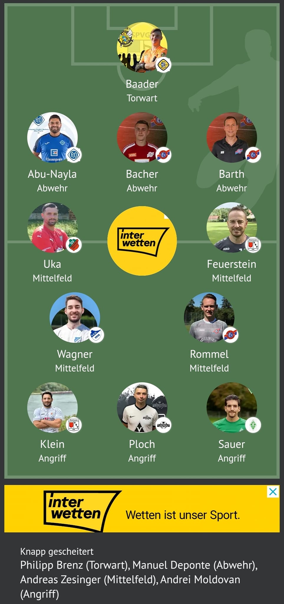 In die Elf der Woche für Spieltag Nr. 18 (0:0-Remis gegen Stettfeld) wurde von unserem FCO nun Marvin Wagner berufen.