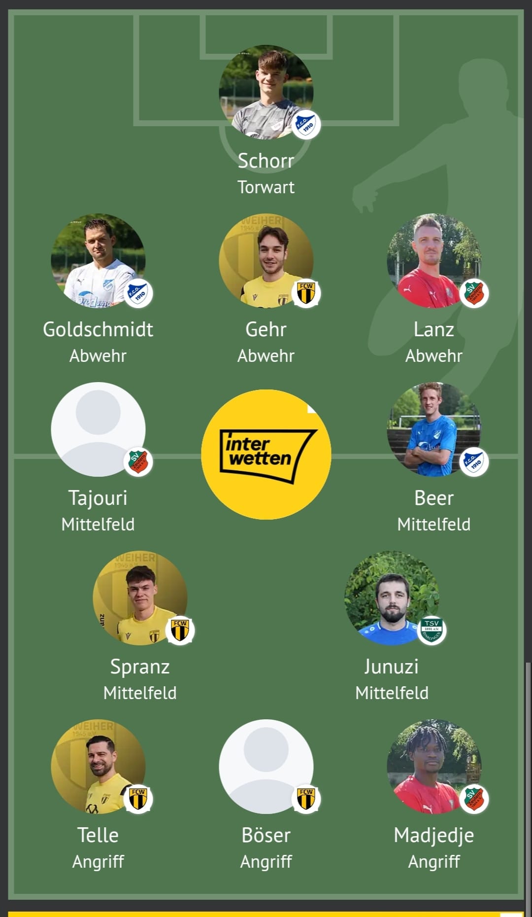 In die Elf der Woche für Spieltag Nr. 16 (1:0-Sieg bei Kirrlach II) wurden von unserem FCO nun Jakob Schorr, Marcel Goldschmidt und Julian Beer berufen.