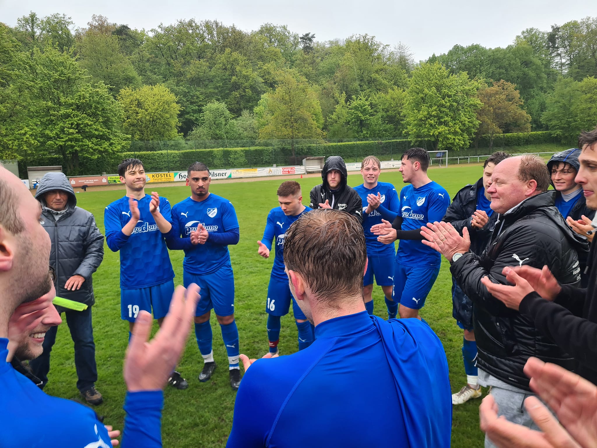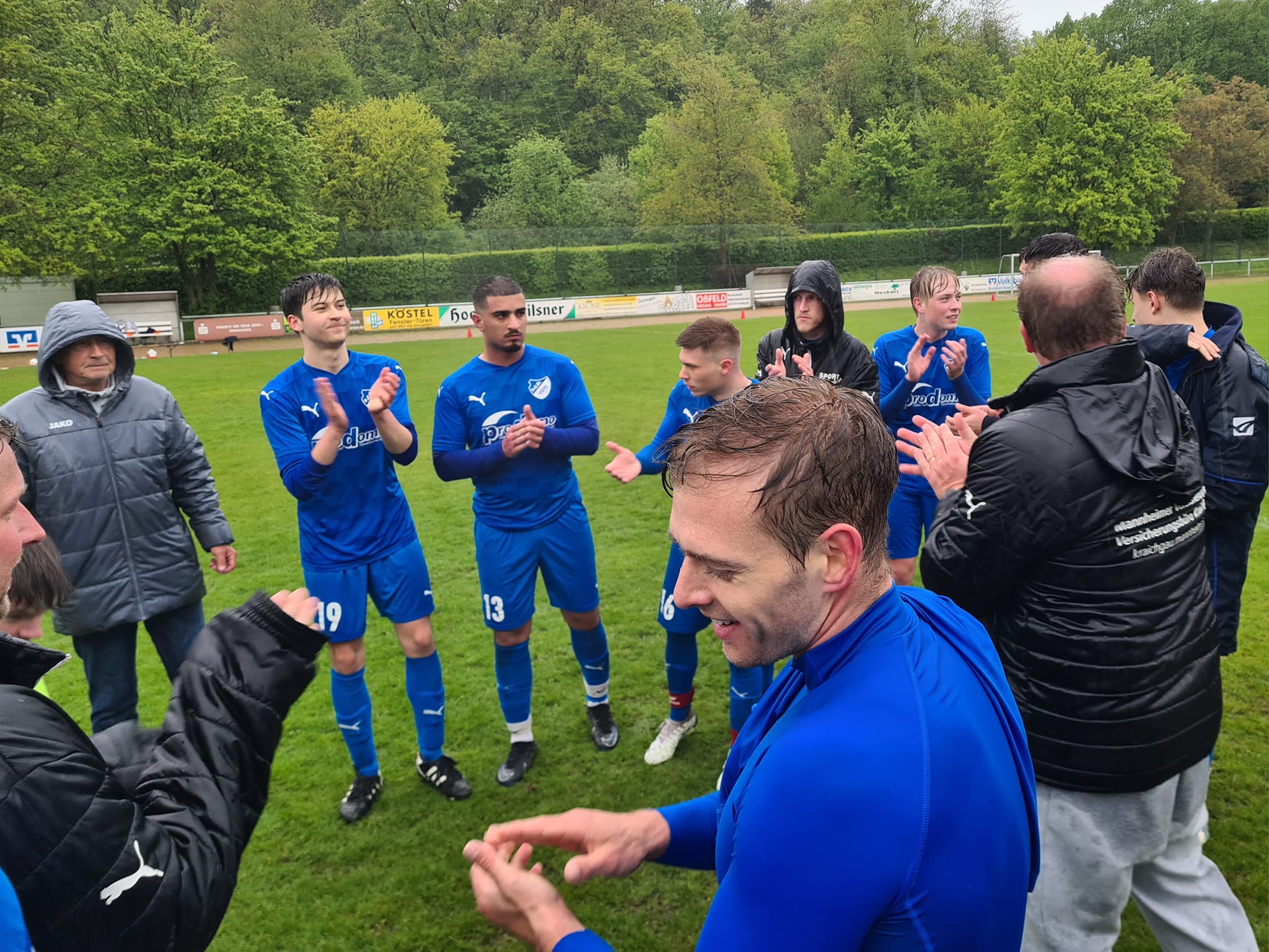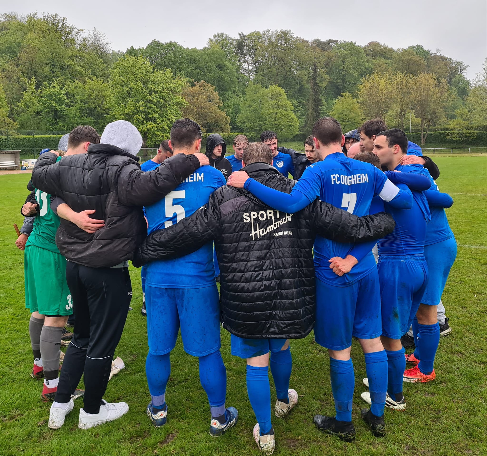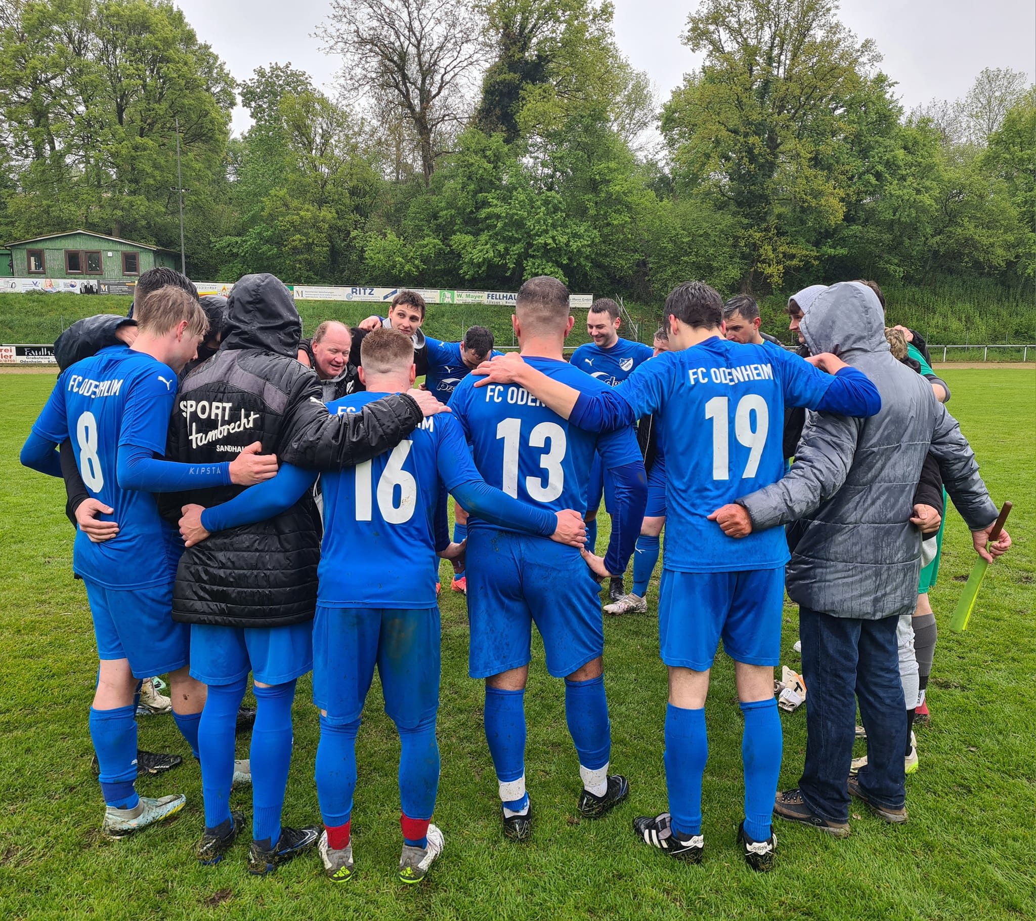 Aus der Pause kamen die Zeuterner um den präsenten und stark aufspielenden Prebel (aus unserer Jugendkooperation) druckvoll und in der 50sten zu einer ersten nicht ungefährlichen Strafraumaktion. Nach der folgenden Ecke flog ein Kopfball eines Zeuterners knapp übers FCO-Tor. In der 60sten versuchte es Gästestandardspezialist Uka mit einem Freistoß, der rund einen halben Meter übers Gehäuse zischte. Es waren dies die beiden ersten echten Chancen für die Gäste und diese sollten es auch für längere Zeit bleiben. Denn nach rund einer halben Stunde nahm unser FCO das Heft in die Hand und spielte aufs 2:0. In Minute 62 wäre es beinahe schon soweit gewesen. Nach guter Einleitung von Beer ging es ganz schnell, Hahn schlug eine Topflanke in den Sechzehner und Ferreira da Fonseca nahm das Leder mit vollem Risiko aus der Luft. Großes Pech, dass der Abschluss knapp am Tordreieck vorbeiflog – diese Szene hätte wahrlich einen Treffer verdient gehabt. In der 64. Minute der erste FCO-Wechsel: Knapp für eben Ferreira da Fonseca. Zwei Minuten später setzte Benz seinen kongenialen Partner Beer ein, dieser zeigte seine ganze Klasse, überlief zwei Mann und vollendete trocken zum 2:0 (66.). Drei Zeigerumdrehungen später nach einer tollen Kombination im Mittelfeld ein starker Lauf von Zimmermann in die Spitze, im letzten Moment konnte ihn ein Zeuterner gerade noch stoppen. Unser Team blieb dran, machte es wirklich gut und ließ sich auch vom Dauerregen nicht beeindrucken – im Gegenteil: So ein „Fritz-Walter-Wetter“ passte bestens zu einem temporeichen und umkämpften Derby. In der 75sten Freistoß für unsere Viktorianer, ausgeführt von Deponte. Die Kugel fiel abgefälscht knapp neben das Zeuterner Tor. Es folgte eine Serie von drei Eckbällen, an deren Ende ein Abschluss von Hahn rund ein Meter über das Gästetor zischte. In der 78sten der nächste FCO-Wechsel: Für Beer kam Leist, der sich auf die Doppelsechs gesellte, Last rutschte dafür eines vor. Unsere Mannschaft verteidigte stark, bereits beginnend in vorderster Front, jeder setzte sich für den Nebenmann ein, in Sachen Kollektiv war es eine richtige starke Darbietung. So dauerte es bis zur 79. Minute, ehe die Gastmannschaft mal wieder gefährlich in die Odenheimer Hälfte kam. Ein Einwechselspieler profitierte hier von einem Ausrutscher eines Odenheimers und steuerte mit schnellen Beinen auf Rechtsaußen Richtung linkes Strafraumeck. Die hier halb Flanke, halb Schuss, senkte sich nicht ungefährlich ans Toraußennetz. Wenig später ein kleiner Aufreger für unseren FCO, ein großer für die Zeuterner. Im Odenheimer Strafraum berührte der Ball plötzlich die Hand eines FCO´lers. Der Schiri ließ weiterlaufen – regelkonform, sprang doch der Ball vom Körper gegen die Hand. Wie man als Außenstehender nach Spielende erfuhr, hatte besagter Odenheimer in dieser Szene seinen Gegenspieler wohl aber auch noch etwas hinuntergezogen. War etwa dies Elfmeterreif? Der Schiri gab später im Kabinentrakt an, auch dies gesehen zu haben, es war ihm aber „zu wenig für einen Strafstoß“. Bei unserem FCO folgten noch drei weitere Wechsel: Mehmet Güzel für Stindl (81.), Goldschmidt und Zorn für Last und Benz (jeweils 85.). Güzel nun einzige Spitze und in der 89. Minute sogar mit der guten Chance, um auf 3:0 zu erhöhen. Im allerletzten Moment konnte sein Vordringen aber noch von einem Zeuterner verteidigt werden. Der Unparteiische hatte die gesamte Begegnung im Griff, ließ dann aus FCO-Sicht aber eher überraschend fast 6 Minuten nachspielen. Und in Minute 90+4 gelang den Gästen, hier wegen der Behandlung eines Odenheimers in Überzahl – doch tatsächlich noch das 2:1. Nach einem gut geschlagenen Freistoß köpfte ein Odenheimer etwas unglücklich Fersching an, der sich damit an seiner alten Wirkungsstätte nochmals in die Torschützenliste eintragen konnte. Es war dies im Übrigen der einzige Ball, der in den gesamten 90+6 Minuten aufs Odenheimer Tor kam. Unser Keeper Jakob Schorr war dabei chancenlos, ansonsten musste er an diesem Tage kein weiteres Mal eingreifen.