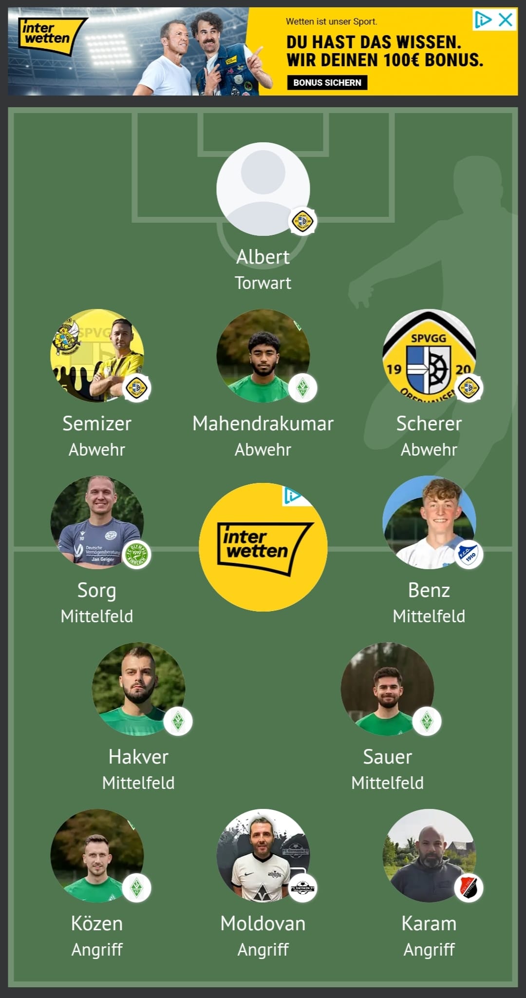 In die Elf der Woche für Spieltag Nr. 23 (3:1-Sieg gegen Rheinhausen) wurde von unserem FCO Luis Benz berufen.