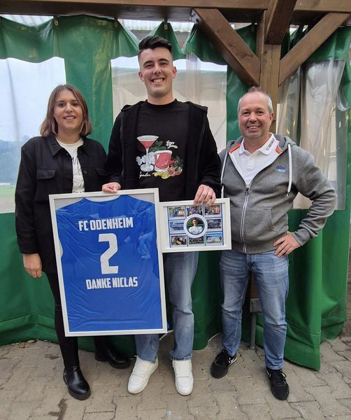 Niclas wurden beim Saisonabschlussfest als Abschiedsgeschenke ein eingerahmtes FCO-Trikot sowie eine Fotocollage überreicht.