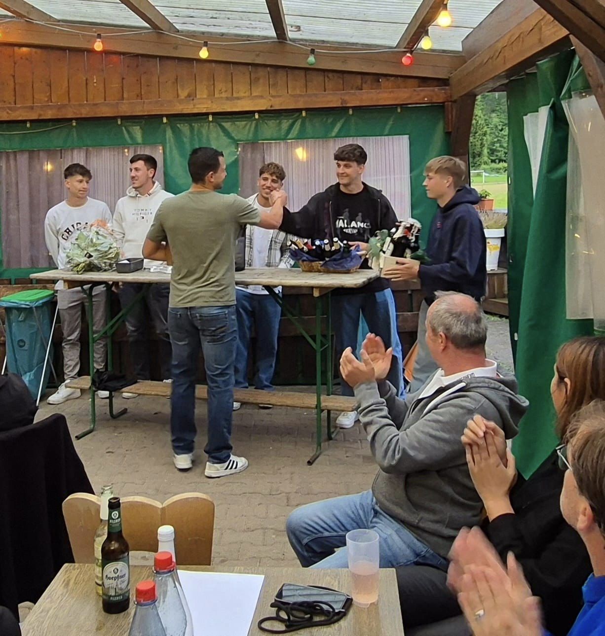 Marcel wurden beim Saisonabschlussfest als Abschiedsgeschenke ein eingerahmtes FCO-Trikot sowie eine Fotocollage überreicht.