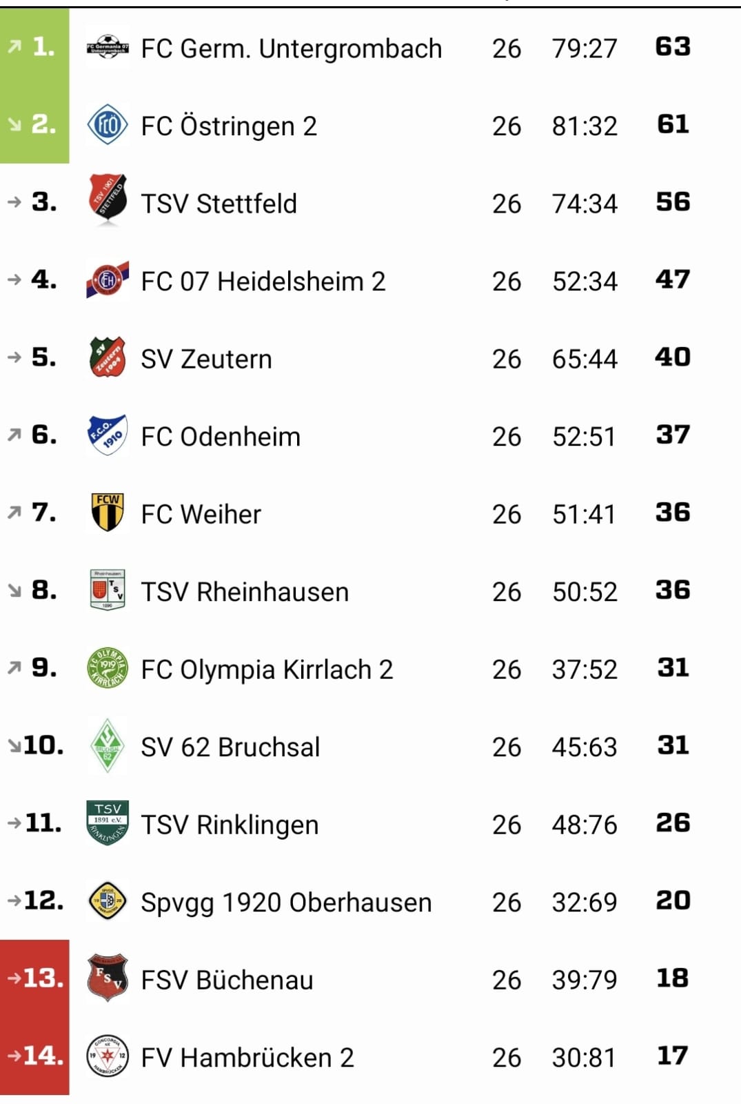 Büchenau verlor am Ende fünfmal und muss damit absteigen. Erwischt hat es auch den FV Hambrücken II, wenngleich dieser in der Saisonendphase kurzzeitig fast nochmals zu den Mannschaften davor aufgeschlossen hatte.