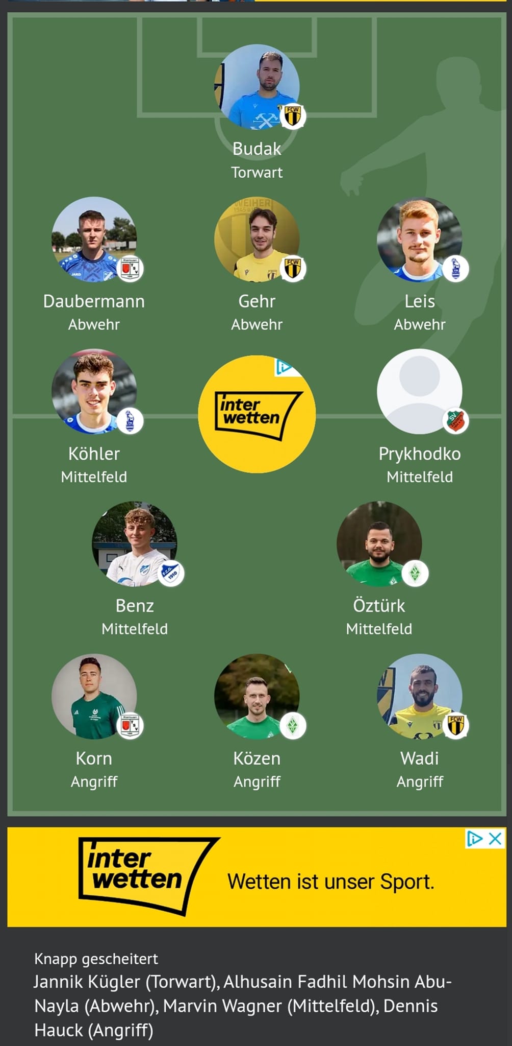 In die Elf der Woche für Spieltag Nr. 1 (6:1-Sieg gegen Oberhausen) wurde von unserem FCO nun Luis Benz berufen.