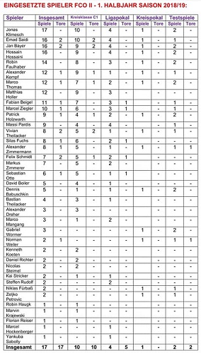 In der Kreisklasse C1 steht man nach Abschluss der Vorrunde und damit zehn absolvierten Spielen mit 10 Punkten (3 Siege, 1 Remis, 6 Niederlagen) und 10:26 Toren auf Position 8 (von 11). Die 5er-Gruppe A des C-Klassen-Ligapokals schloss man mit einer ausgeglichenen Statistik (1 Sieg, 2 Remis, 1 Niederlage = 5 Punkte) und 5:11 Toren ab. Wettbewerbsübergreifend kamen sage und schreibe 37 (!) Spieler zum Einsatz. Kein einziges Mal fehlte Jonas Klimesch, der so alle 17 Spiele bestritt – Respekt! In jeweils nur einem Spiel fehlten Emad Saidi, Kapitän Jan Bayer und Hossain Hossaini. Ein Torjäger lässt sich bisher nicht ausmachen, vielmehr verteilen sich die insgesamt 17 erzielten Treffer auf gleich 13 verschiedene Torschützen; jeweils zwei Mal trafen Emad Saidi, Jan Bayer, Vivian Theilacker (jeweils C-Klasse) und Felix Schmidt (C-Klasse/Ligapokal).